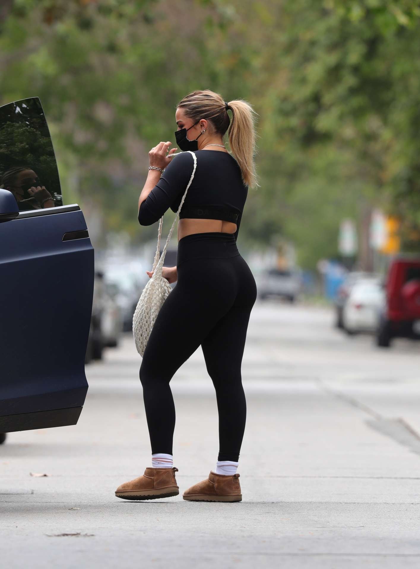 West Hollywood, CA – Addison Rae shows off her midriff as she finishes a morning pilates session.