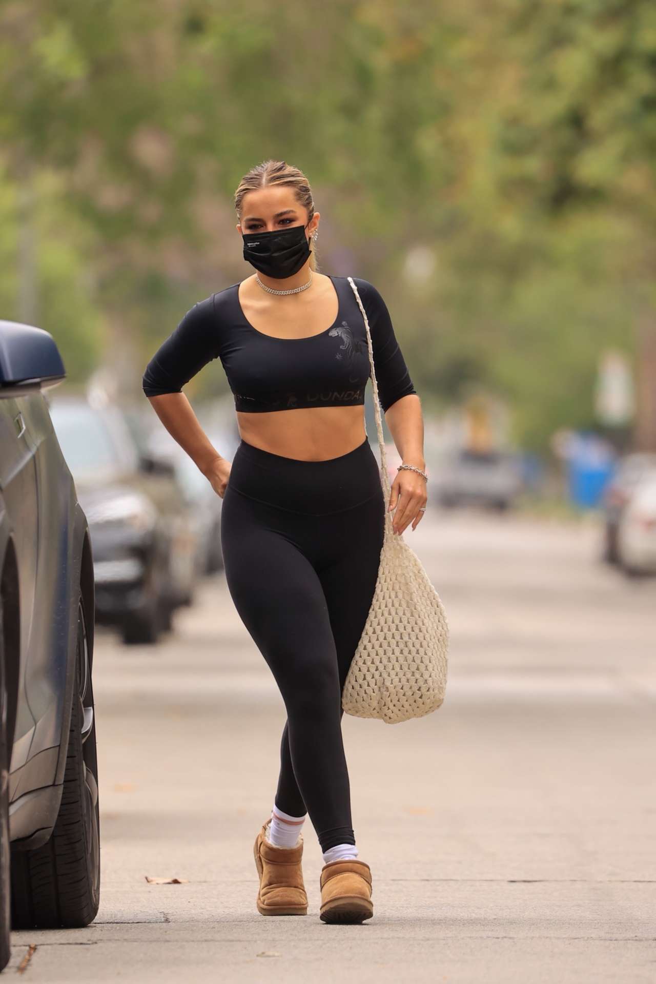 West Hollywood, CA – Addison Rae shows off her midriff as she finishes a morning pilates session.