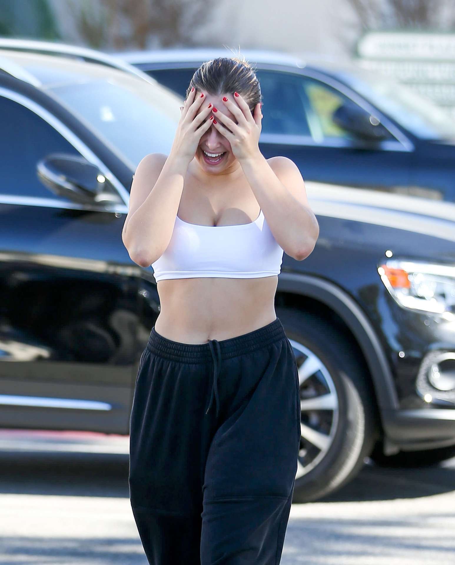 Attached to: Addison Rae Cleavage in a White Sports Bra Out in West Hollywood