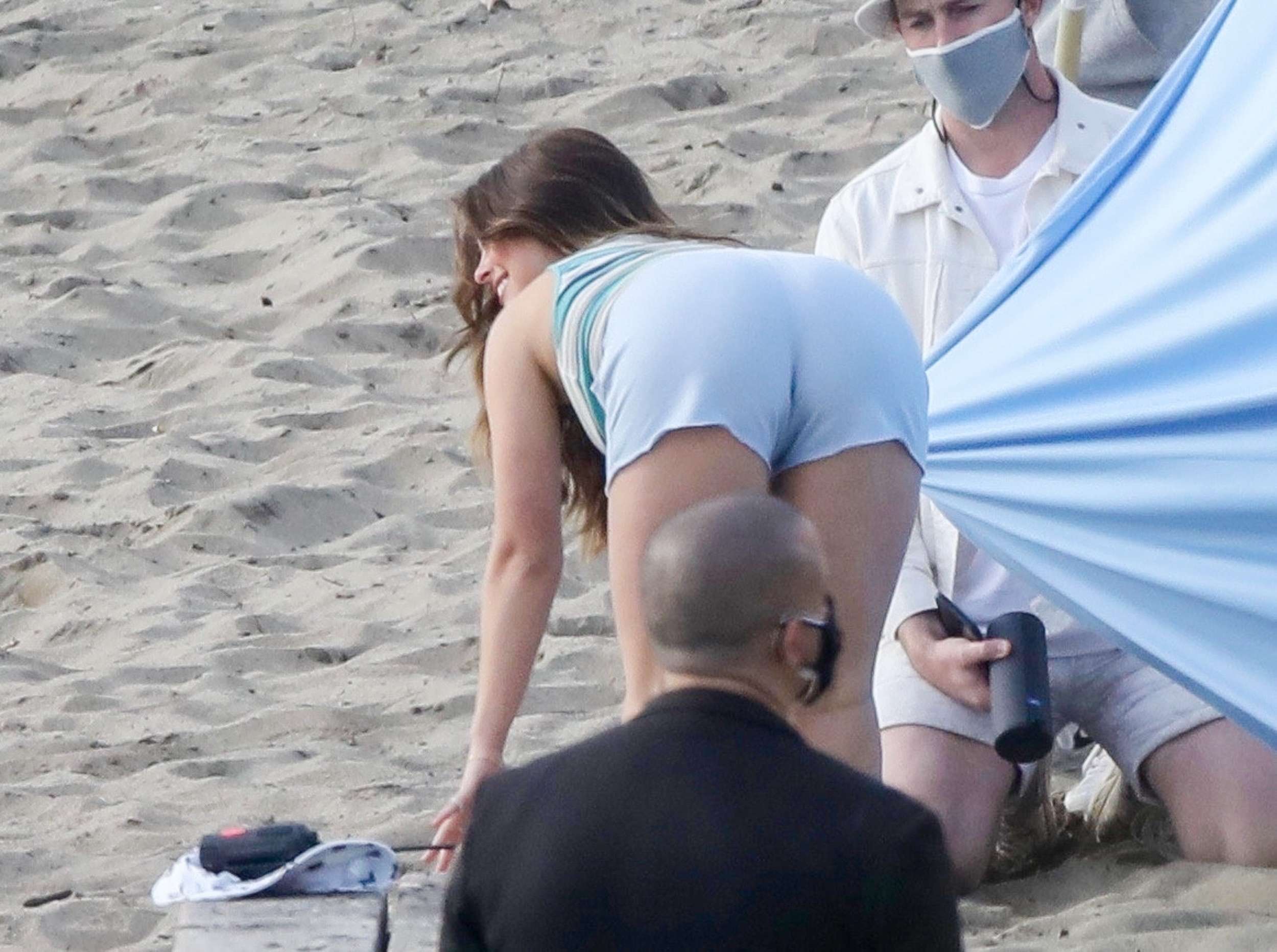Malibu, CA – *EXCLUSIVE* – February 3, 2021. TikTok star Addison Rae has a blast during a beach photoshoot in Malibu. The TikTok star frolics on the beach with a girlfriend while snapping pics and doing cartwheels, before changing her outfit for another shoot.