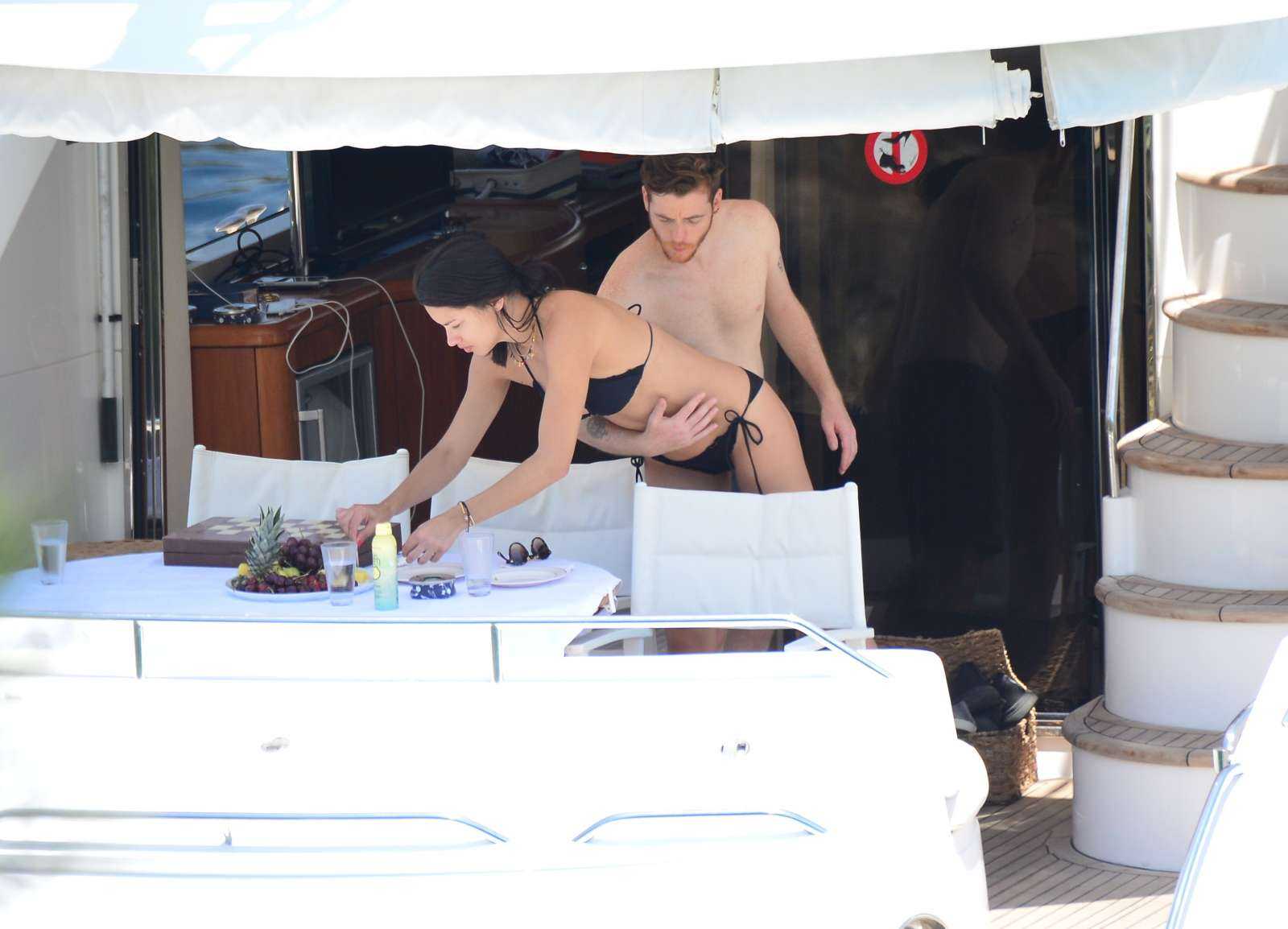 Adriana Lima in Black Bikini on a Yacht in Bodrum, Turkey