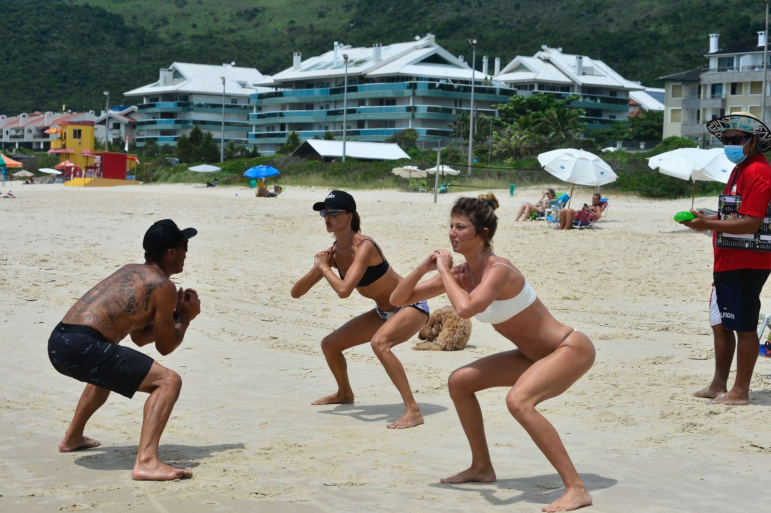 Florianópolis, BRAZIL – Alessandra Ambrosio exercises with a personal trainer and best friend Gisele Cória on the beach!