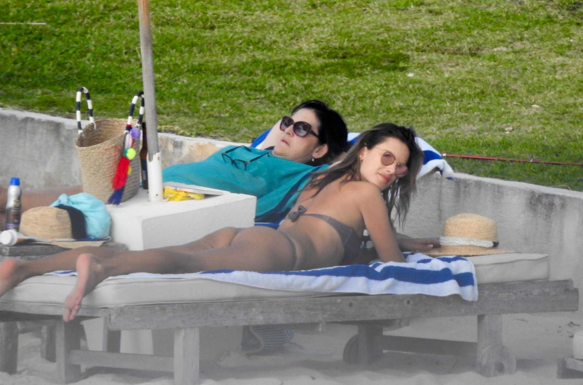 Alessandra Ambrosio in Bikini Relaxing at a Beach in Bahamas
