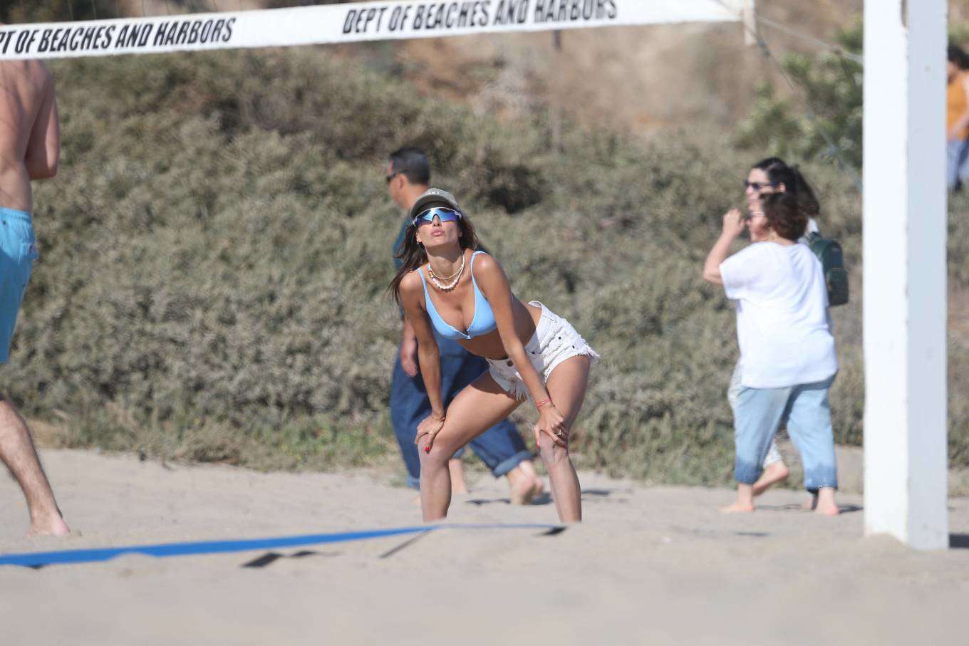 Alessandra Ambrosio in Bikini Top and Shorts Playing Beach Volleyball in Los Angeles