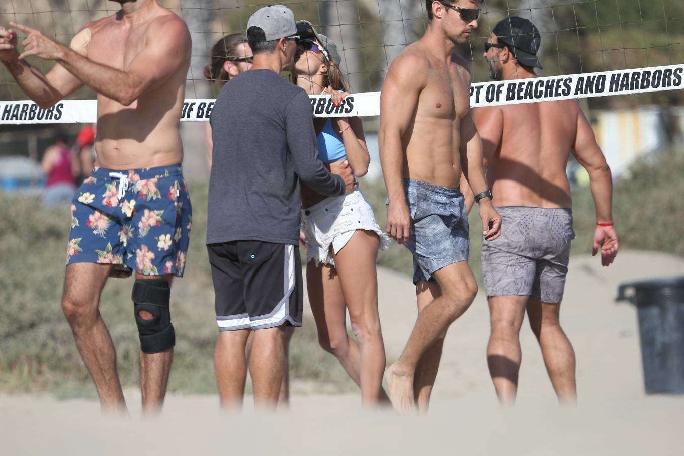 Alessandra Ambrosio in Bikini Top and Shorts Playing Beach Volleyball in Los Angeles