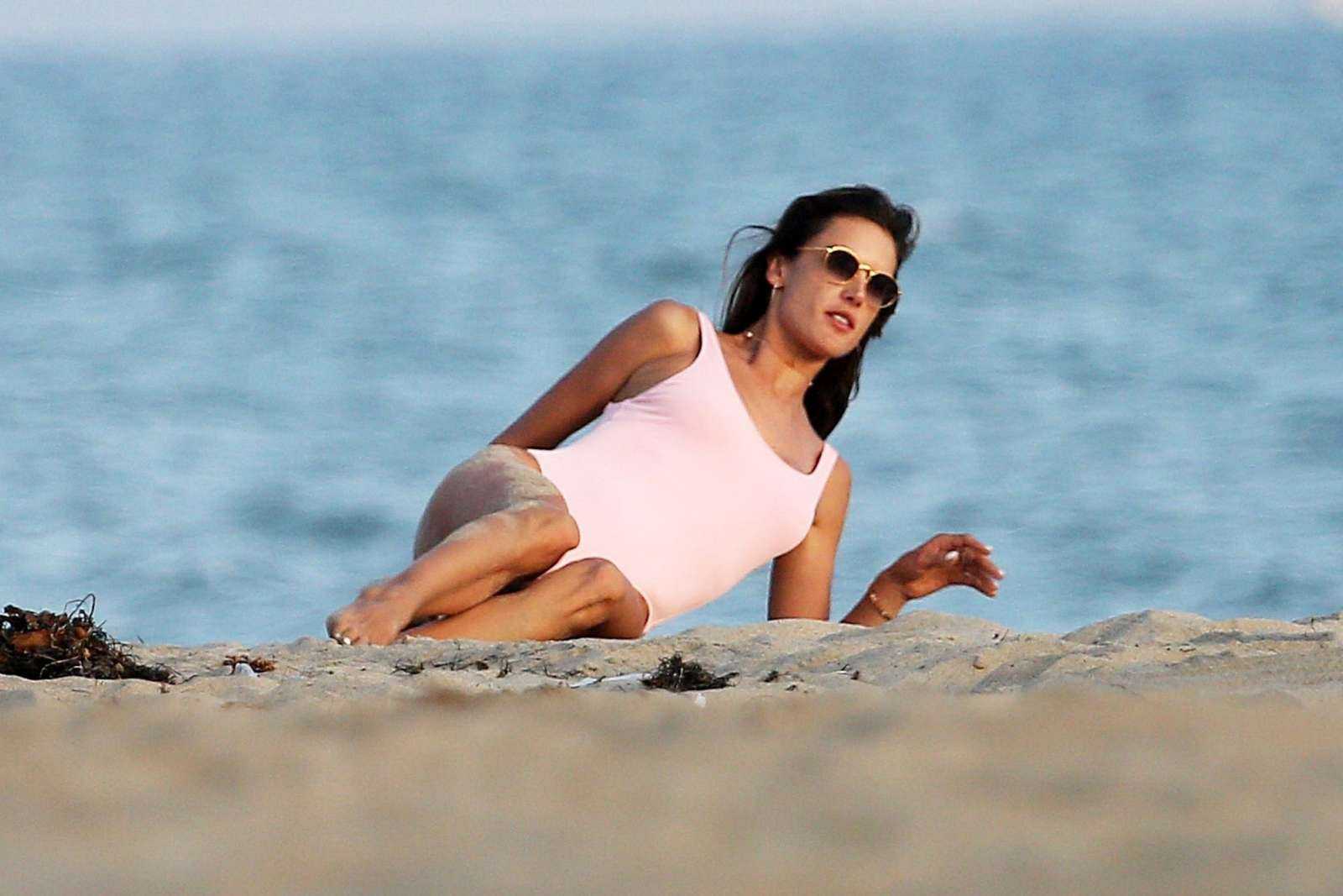 Alessandra Ambrosio in Pink Swimsuit for Photoshoot in Malibu