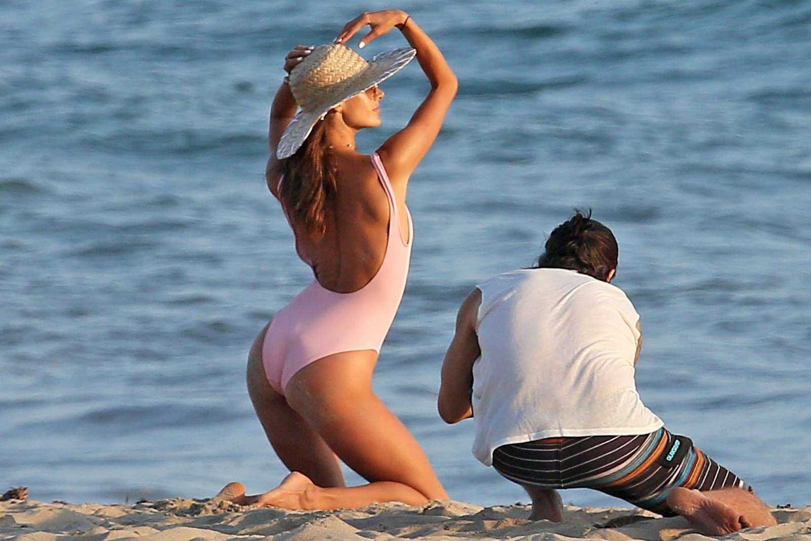Alessandra Ambrosio in Pink Swimsuit for Photoshoot in Malibu