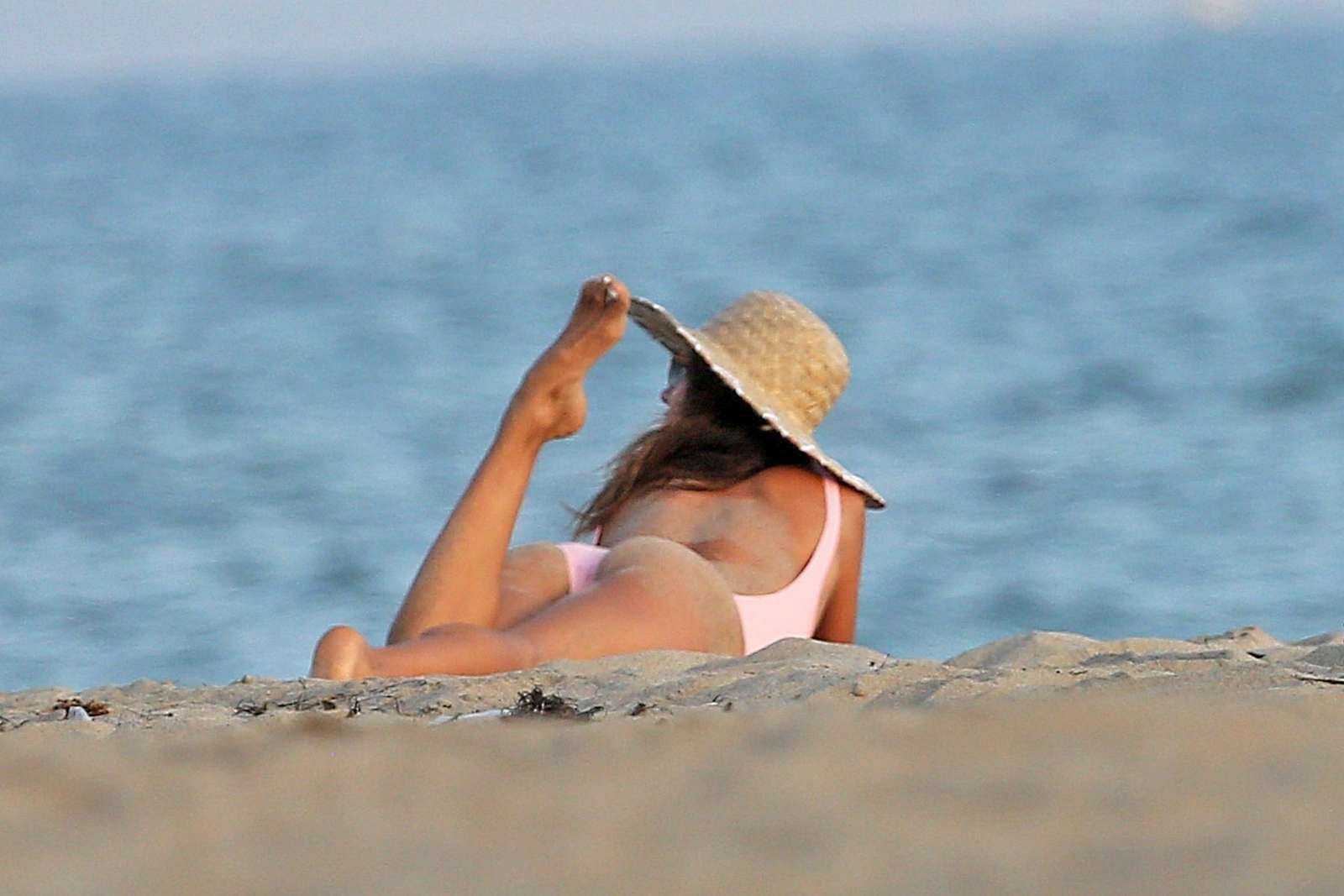 Alessandra Ambrosio in Pink Swimsuit for Photoshoot in Malibu