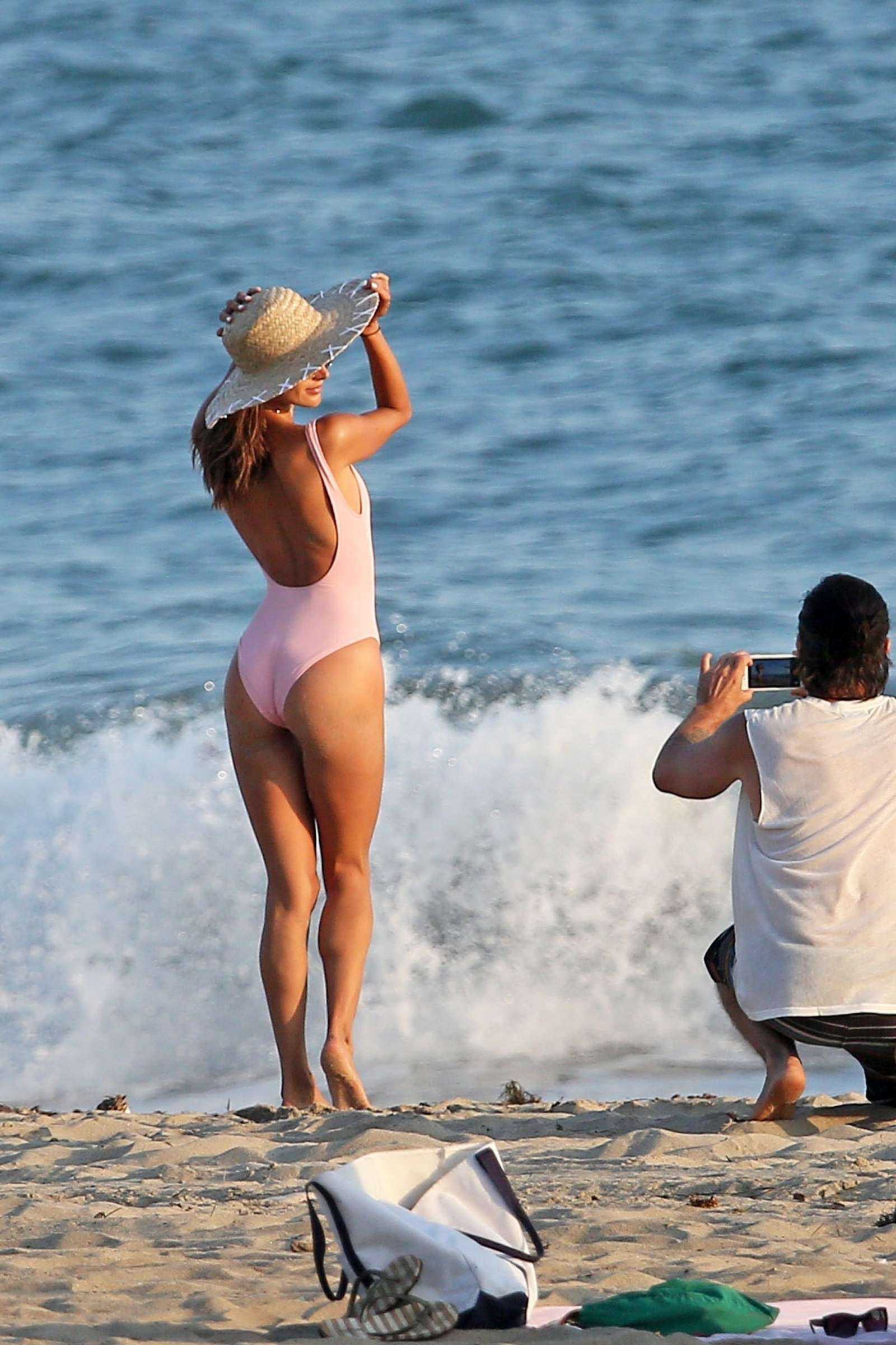 Alessandra Ambrosio in Pink Swimsuit for Photoshoot in Malibu
