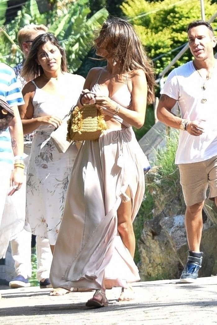 ** RIGHTS: WORLDWIDE EXCEPT IN BRAZIL ** Florianópolis, BRAZIL – *EXCLUSIVE* – Alessandra Ambrosio shows off her impeccable figure while out with friends. Alessandra was seen showing off her toned and tan physique in a cut out wrap dress while enjoying a sunny day with friends.