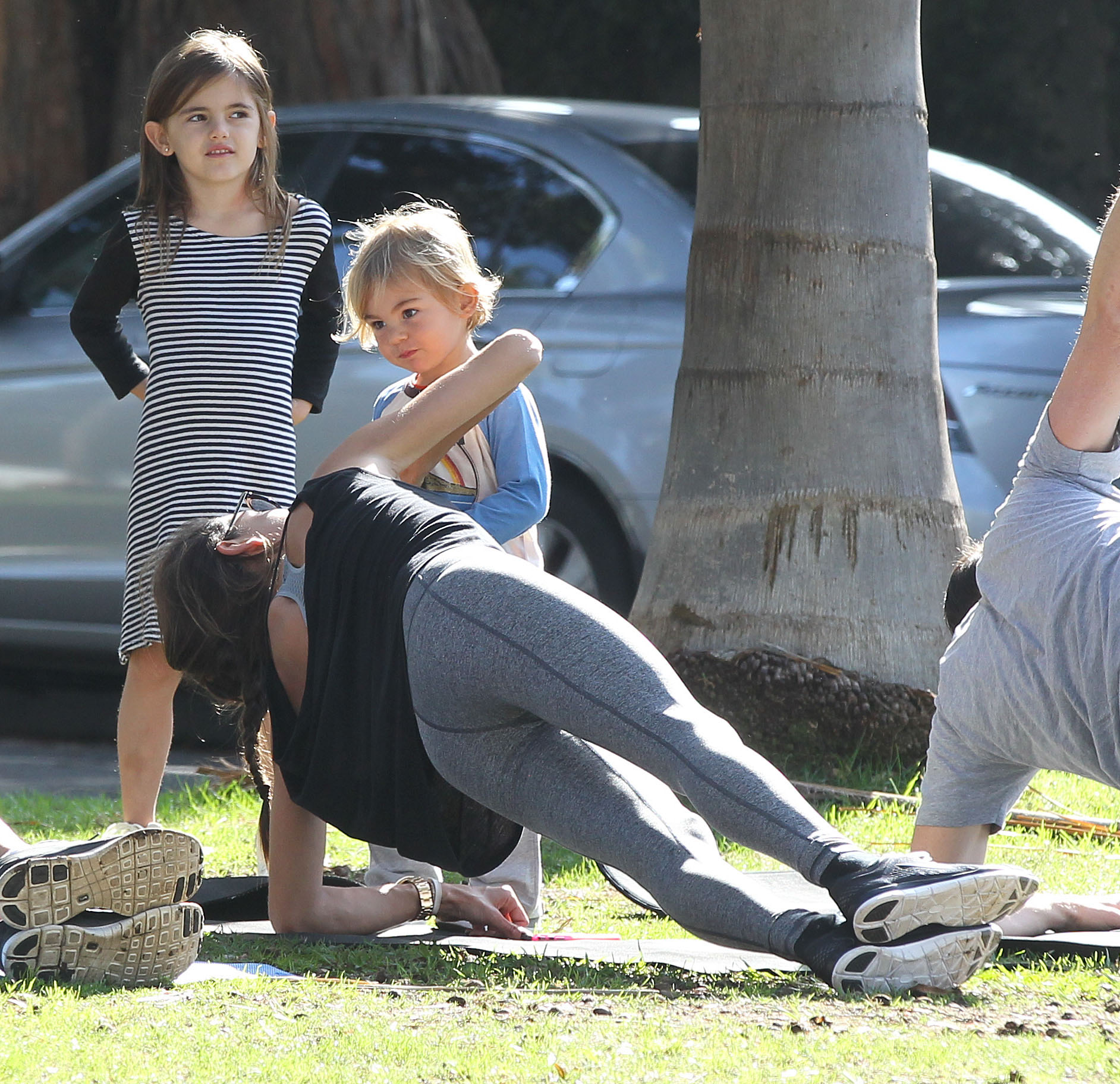 Alessandra Ambrosio – doing yoga at a park in Santa Monica 12/6/14