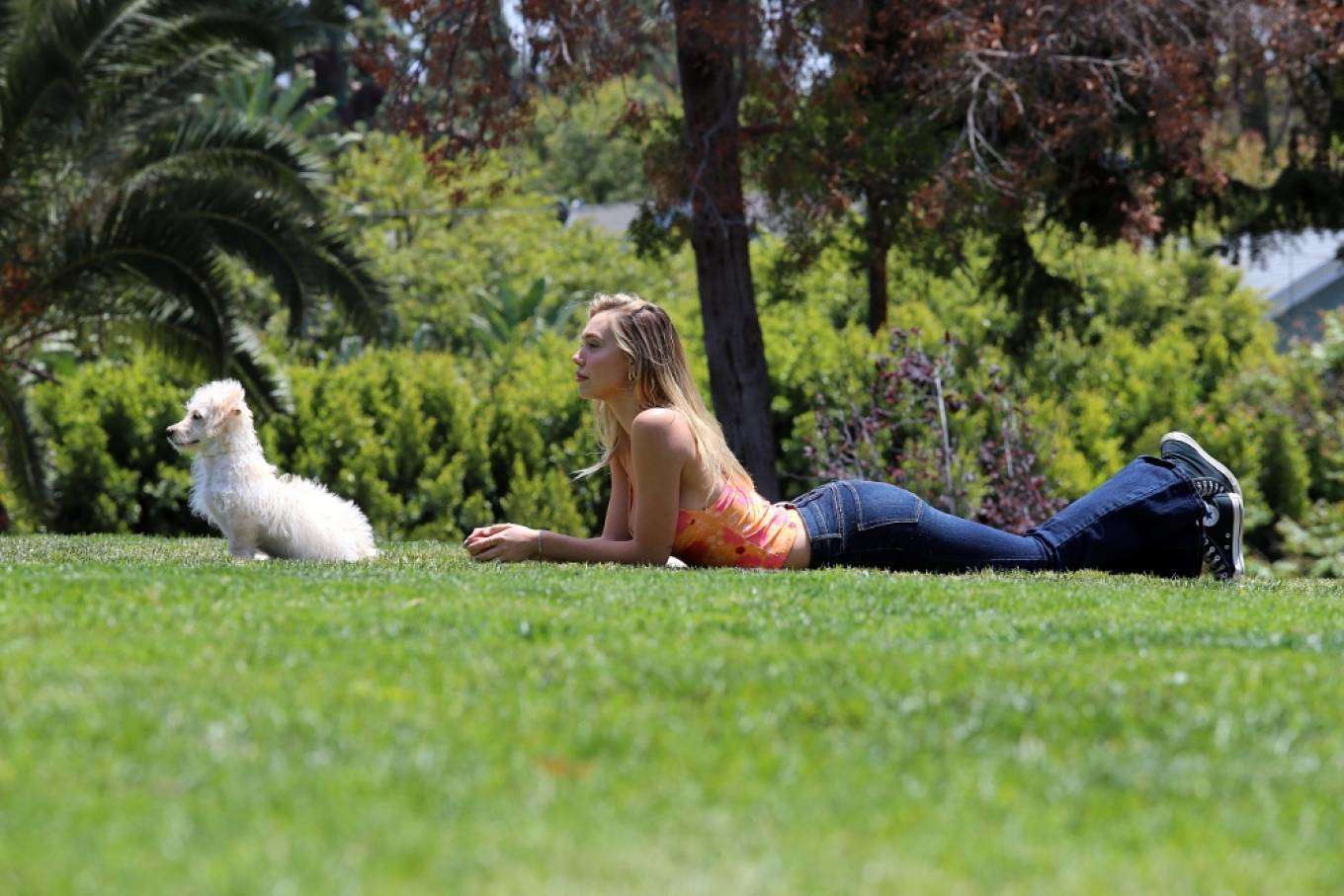 Attached to: Alexis Ren Cleavage, Spotted with her Pup Angel in a Local Park in Los Angeles