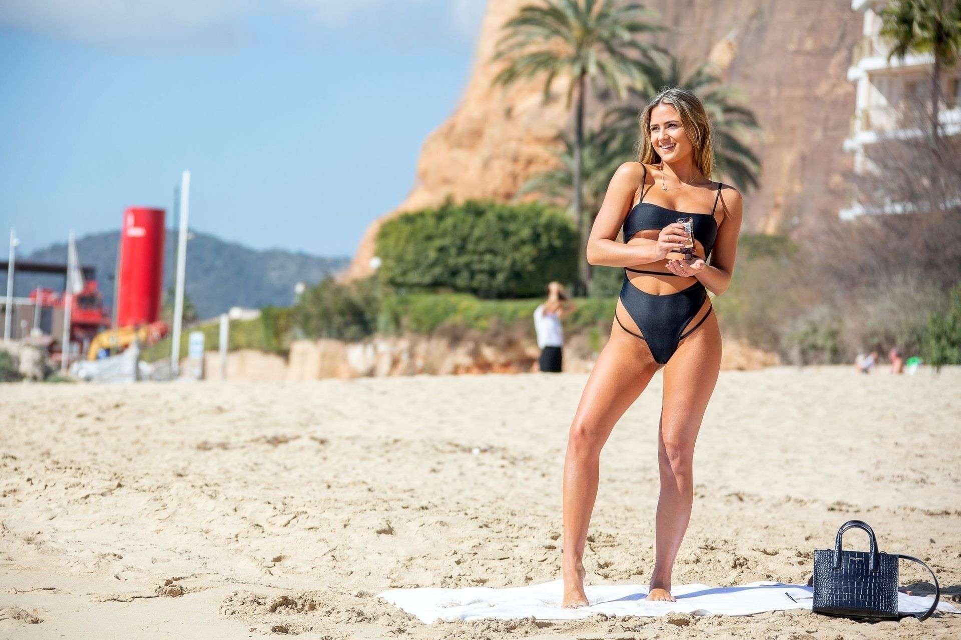 Alicia Oates at The Bachelor Contestant in a Black Swimsuit in Tenerife