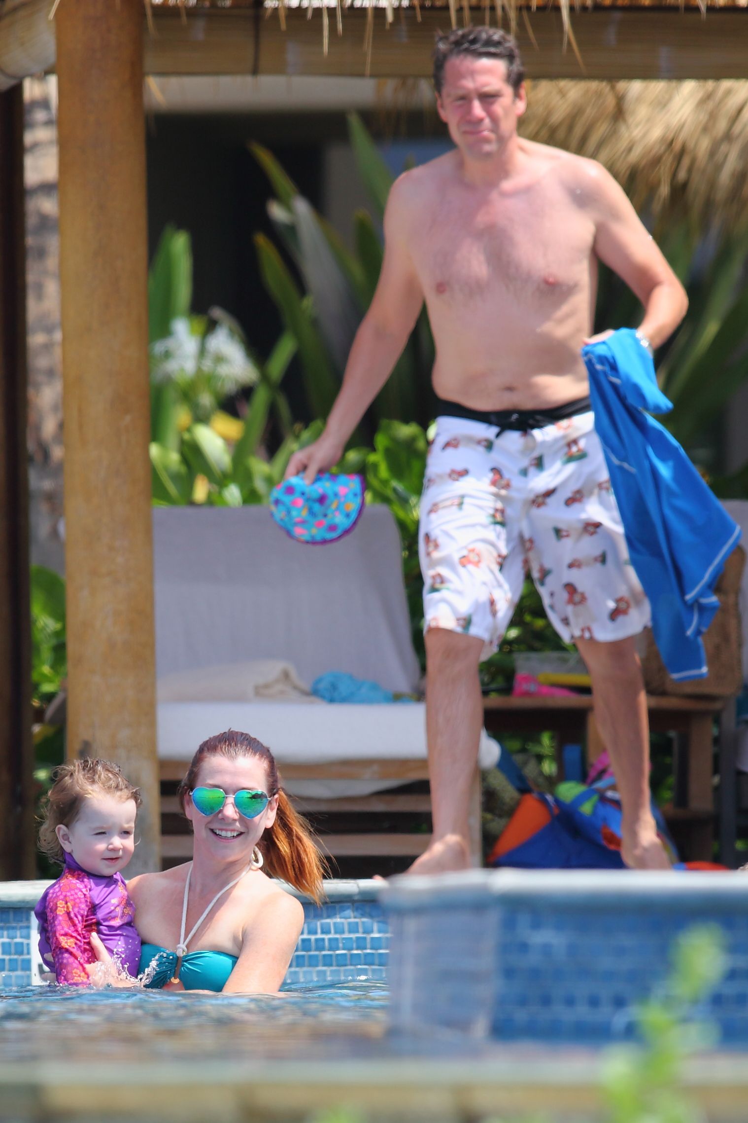 Alyson Hannigan in Blue Bikini, at a Pool while on Vacation in Hawaii