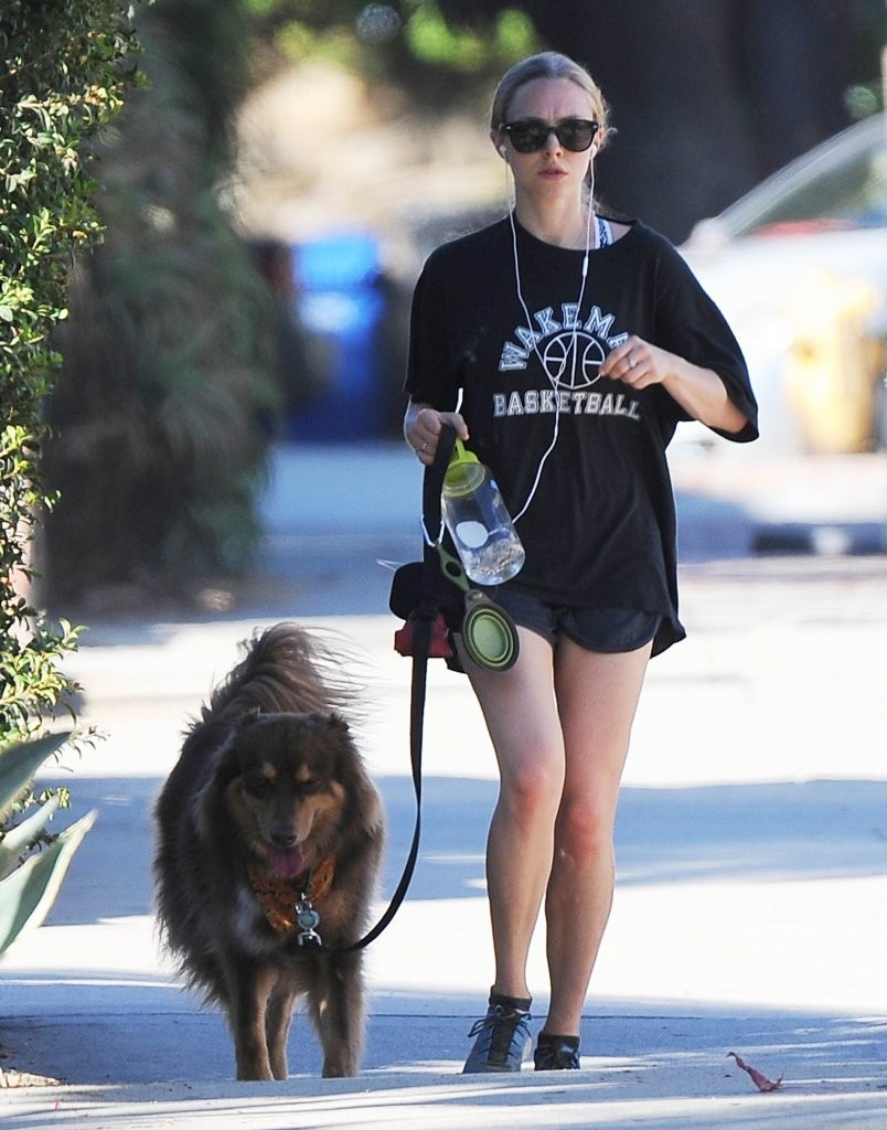 Amanda Seyfried in Shorts Walking with her Dog in West Hollywood