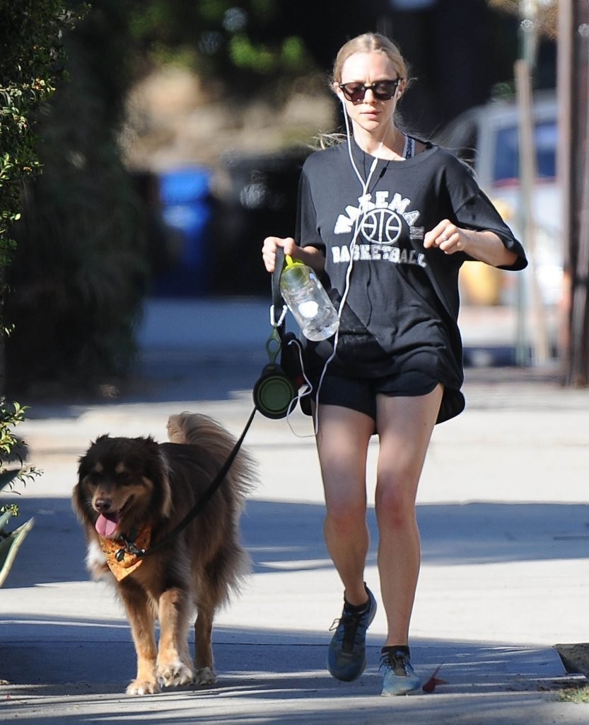 Amanda Seyfried in Shorts Walking with her Dog in West Hollywood