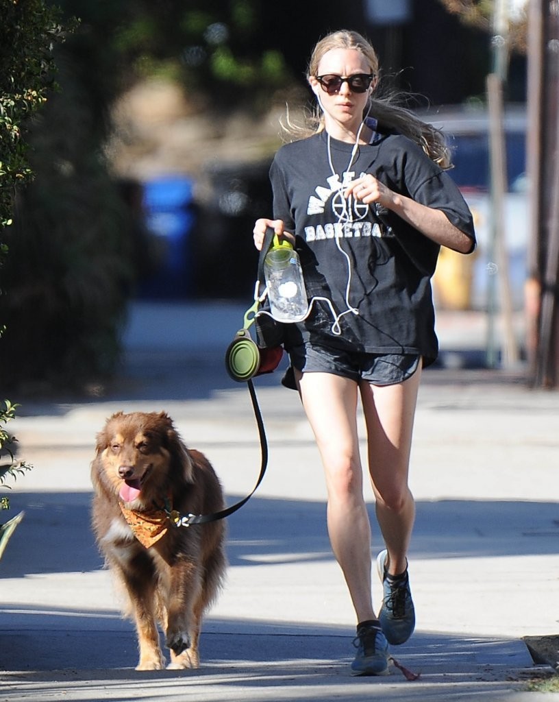 Amanda Seyfried in Shorts Walking with her Dog in West Hollywood