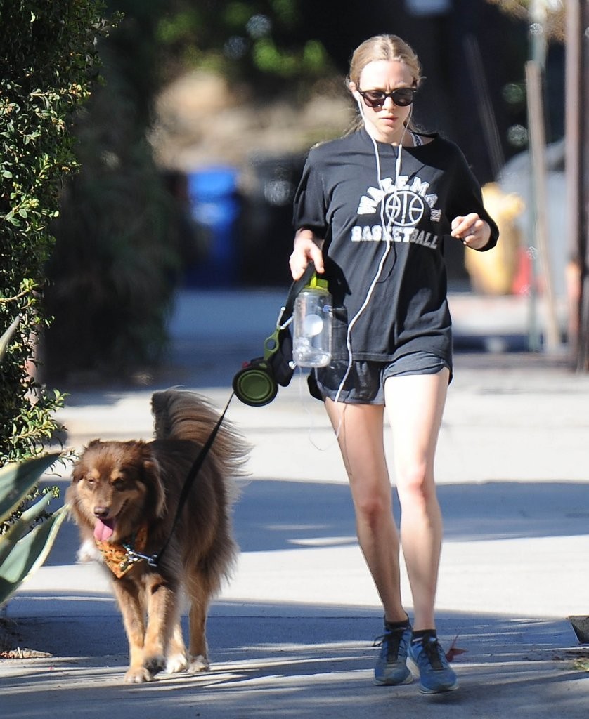 Amanda Seyfried in Shorts Walking with her Dog in West Hollywood