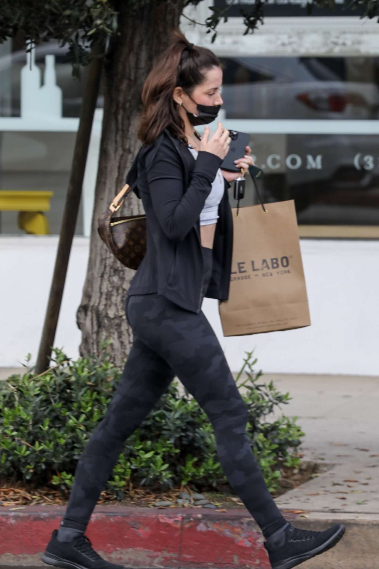 Los Angeles, CA – *EXCLUSIVE* – Cuban-Spanish actress Ana de Armas shops for perfume at Le Labo Inc. Manufacturers of Fine Perfumery in LA showing off her six-pack in a crop top and camo leggings.