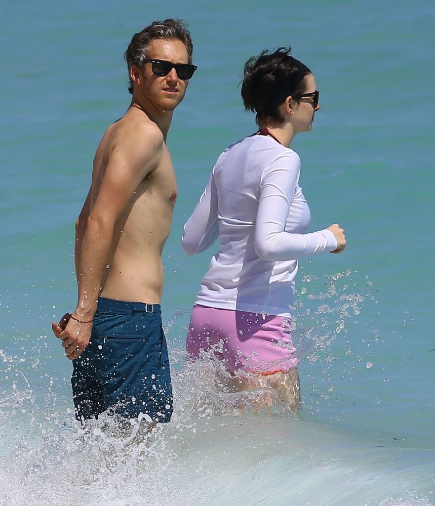 Anne Hathaway in a Covered Bikini, on a Beach in Miami