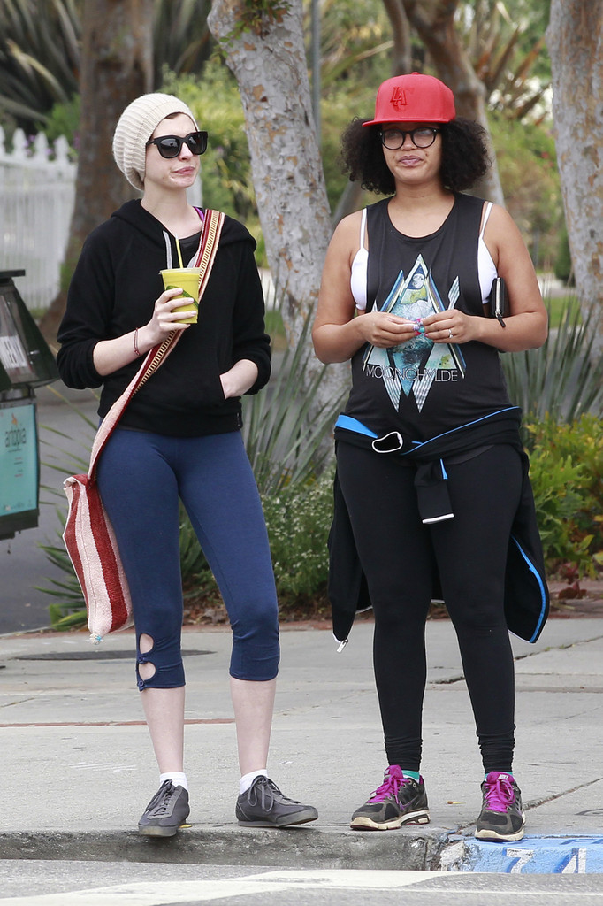 Attached to: Anne Hathaway in tights, shopping for healthy groceries at Erewhon in Los Angeles