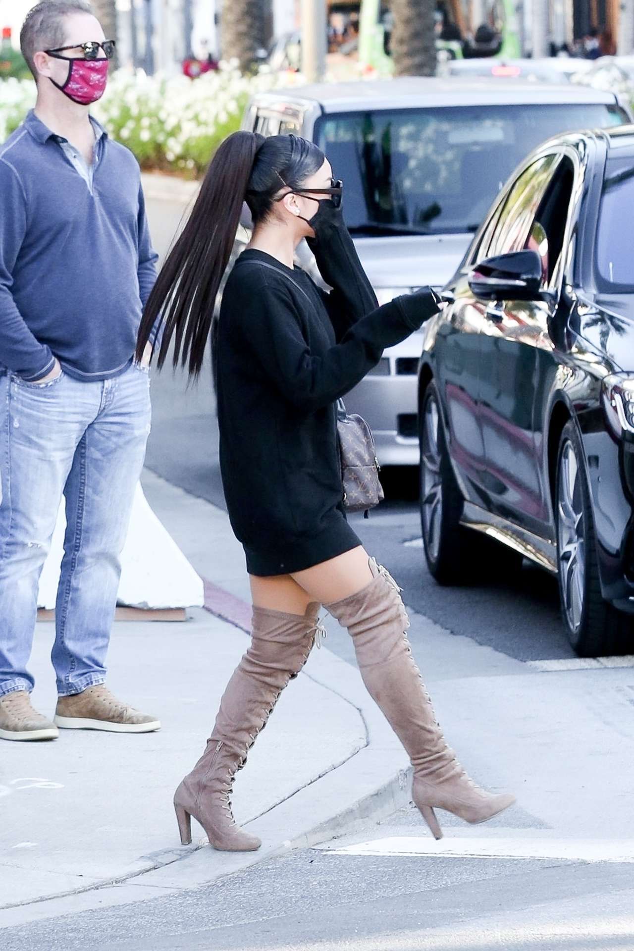 Beverly Hills, CA – Ariana Grande rocks a black dress paired with over the knee beige boots while out doing some shopping in Beverly Hills.