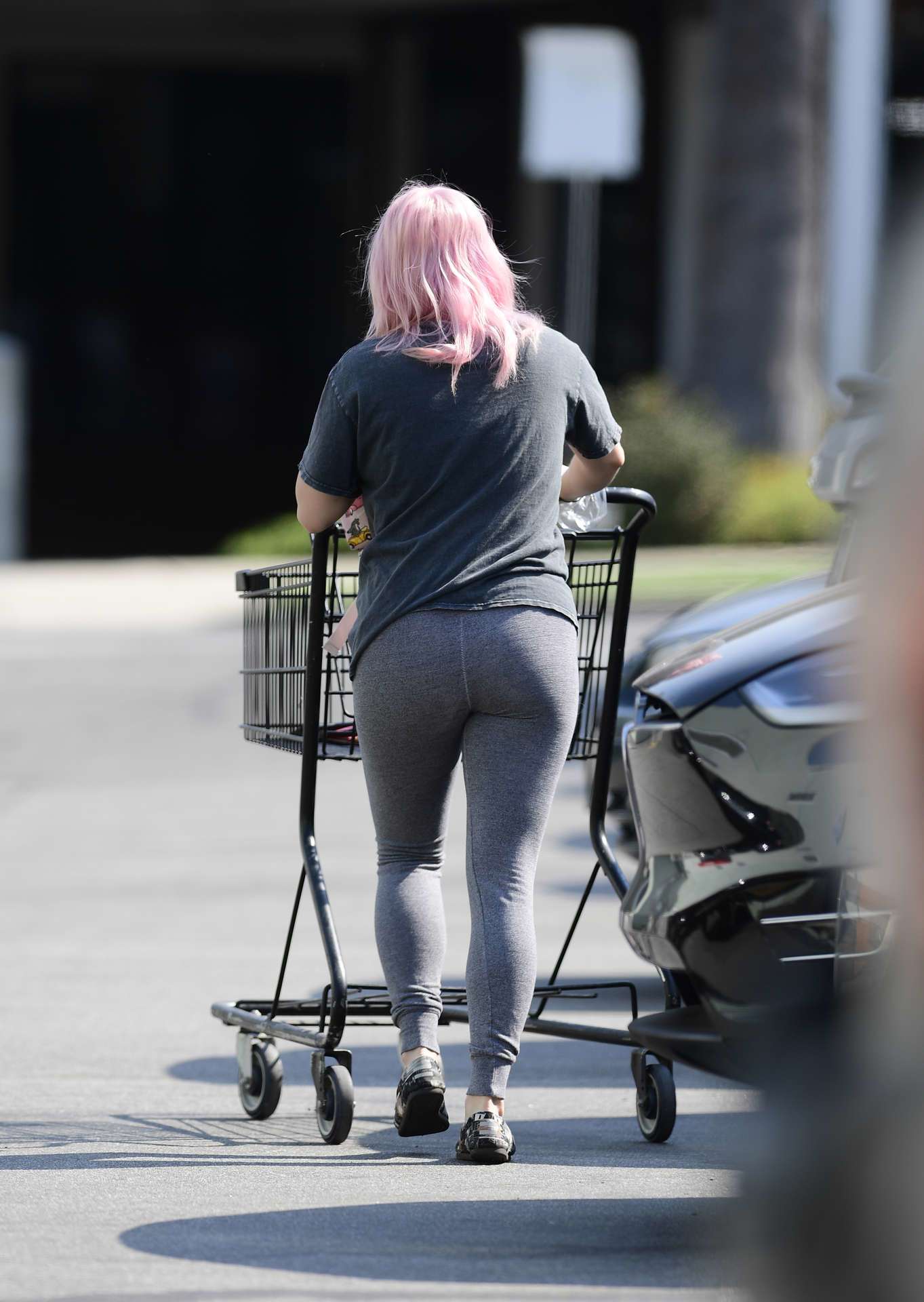 10/17/2020 EXCLUSIVE: Ariel Winter is spotted making a trip to Petco in Los Angeles. The 22 year old American actress was dressed casually wearing a grey tee shirt paired with grey tights and back slip on shoes as she pulled a trolley that was completely packed with dog food, dog crate and a dog bed.