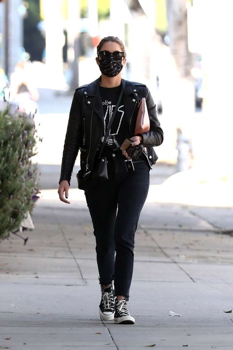Los Angeles, CA – *EXCLUSIVE* – Actress Ashley Benson seen running a few errands around town this afternoon looking rocker cool in a leather biker jacket.