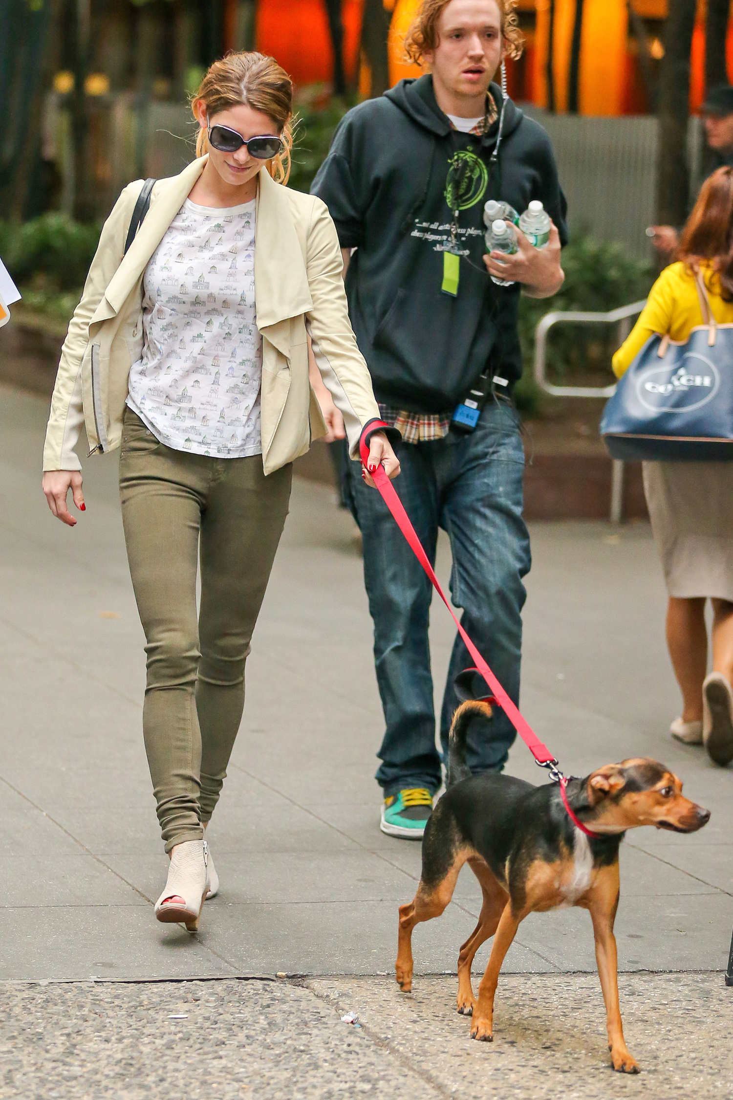 Ashley Greene walks her dog while on break from filming “Urge”