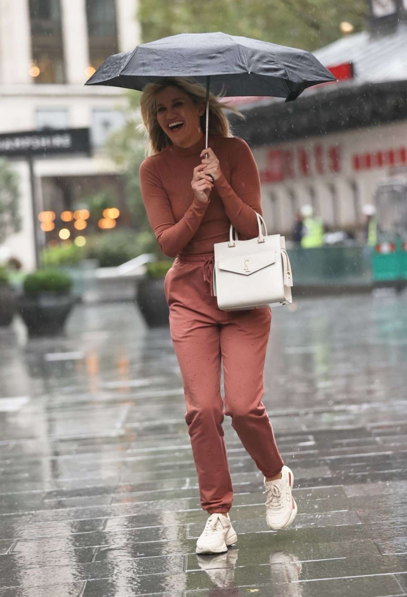 Attached to: Ashley Roberts Leaving Heart Radio on a Rainy Day in London