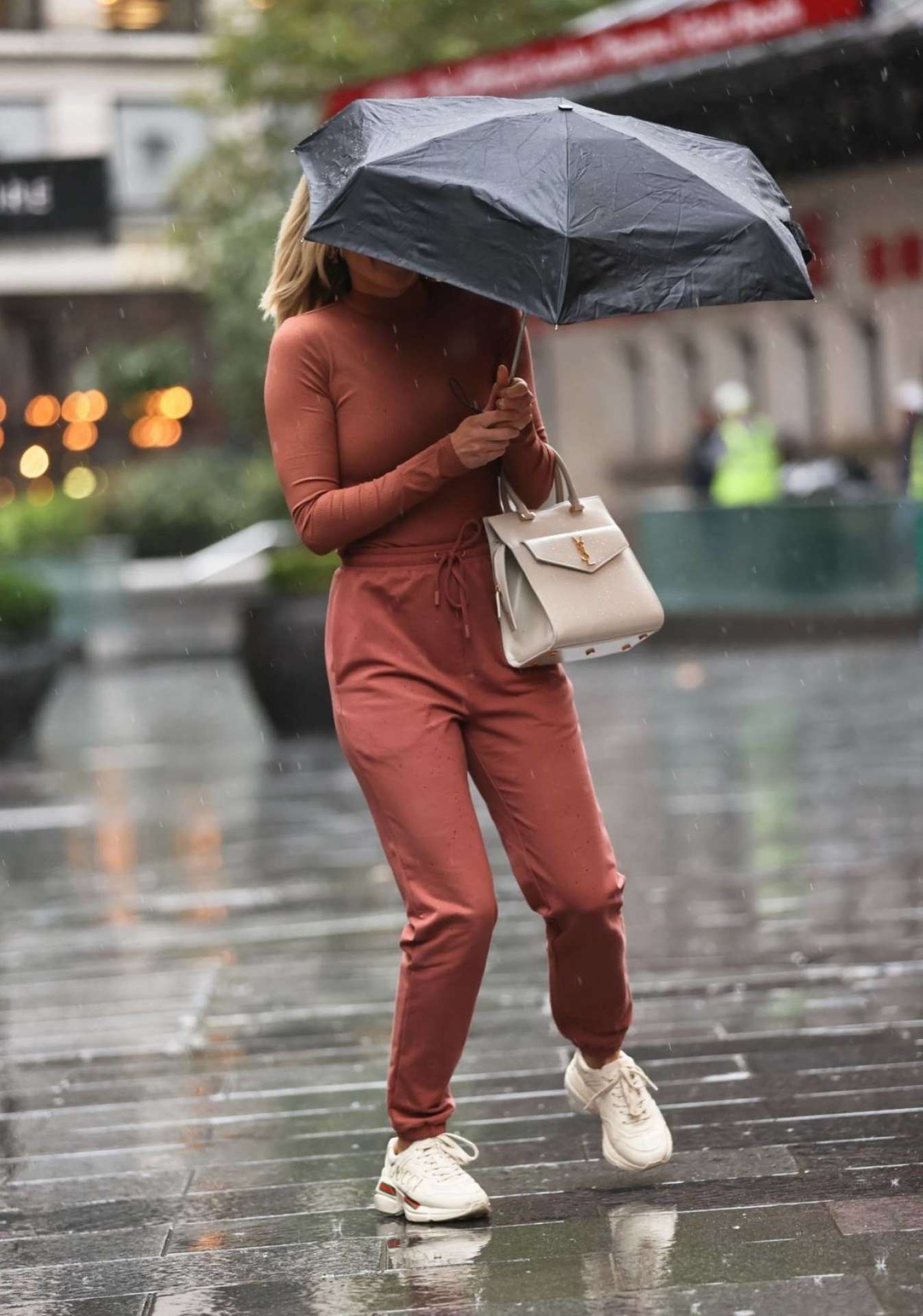 Attached to: Ashley Roberts Leaving Heart Radio on a Rainy Day in London