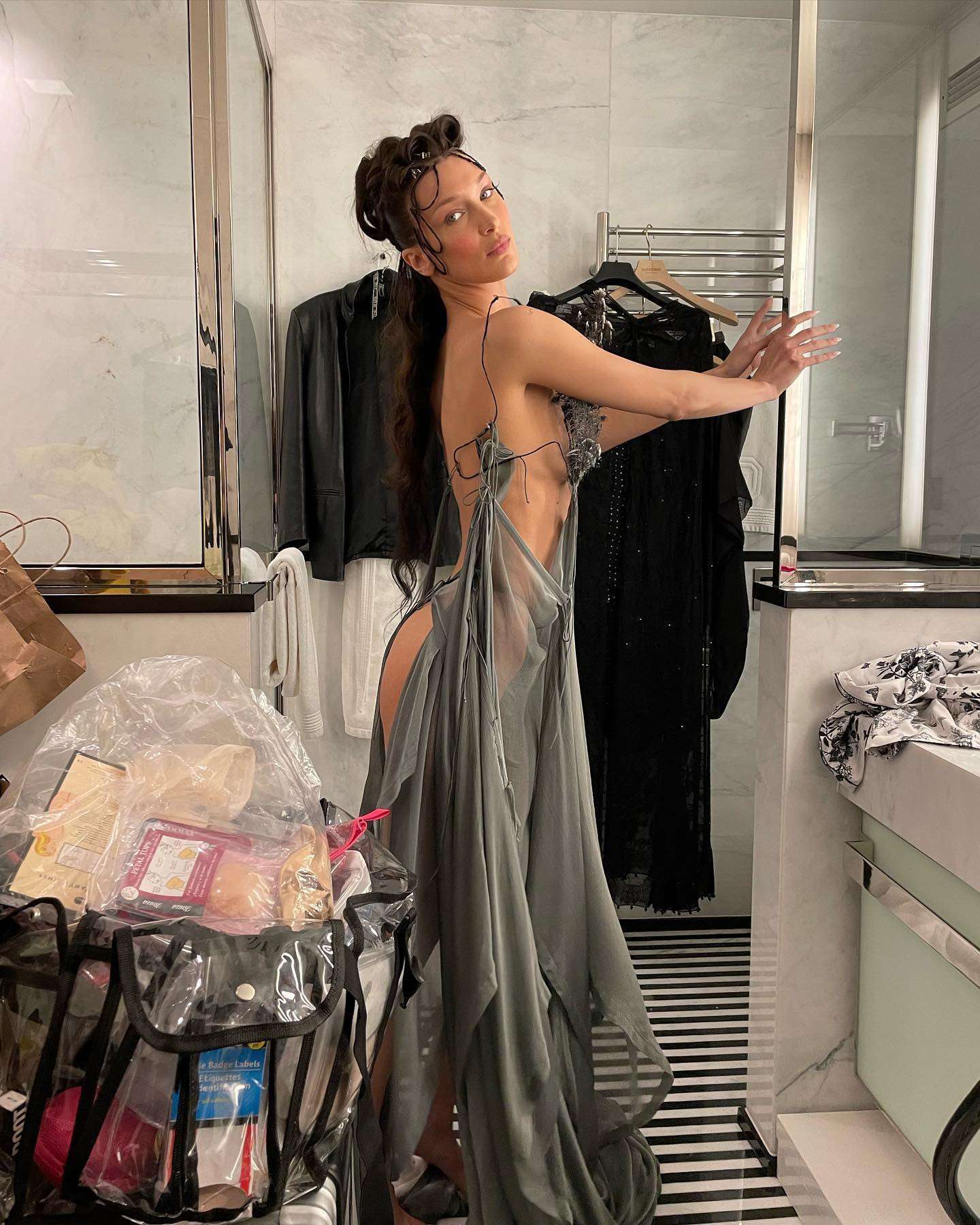 Attached to: Bella Hadid Cleavage and Booty in a Skimpy Outfit for Interview Magazine – May 2022