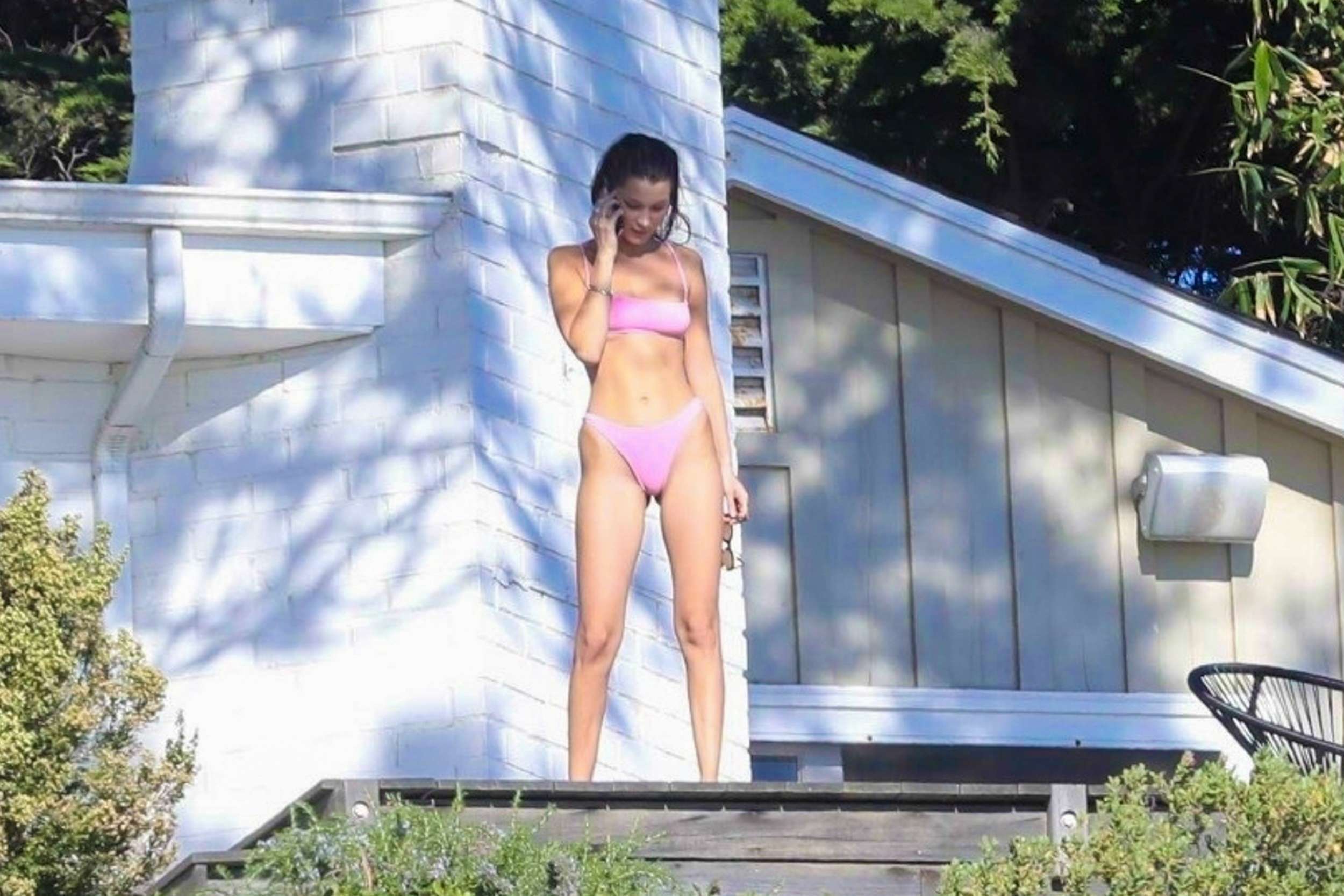 *EXCLUSIVE* Bella Hadid sun tans with friend after taking a call **WEB MUST CALL FOR PRICING**