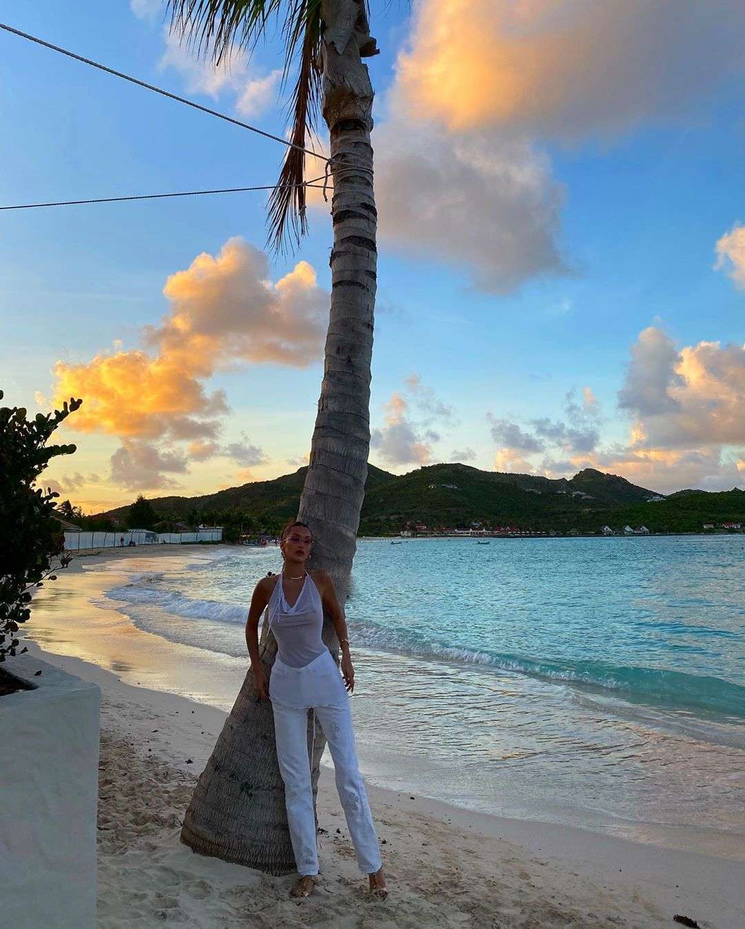 Bella Hadid in See-Through Top at the Beach