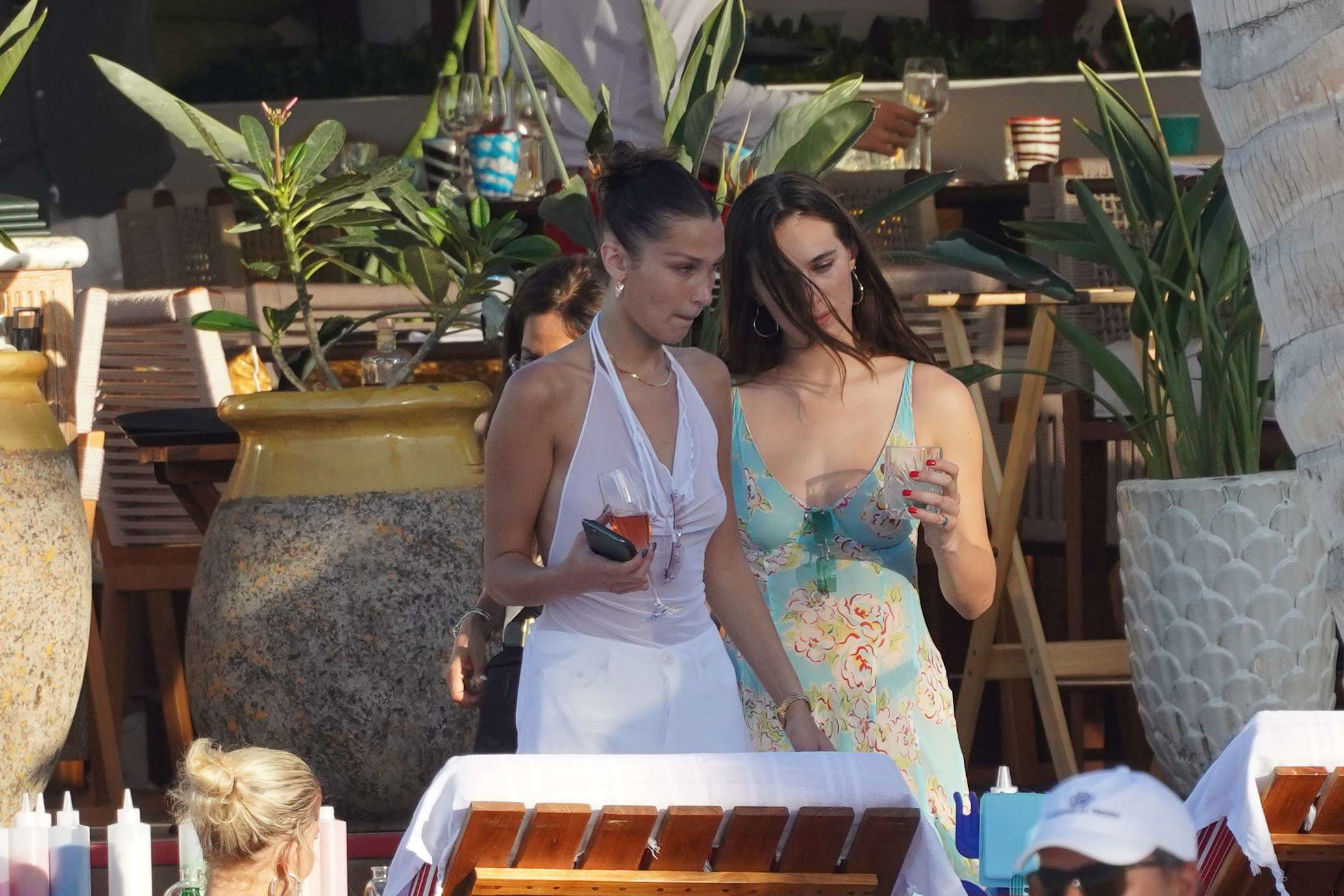 Bella Hadid is seen in St Barts with a see through top.