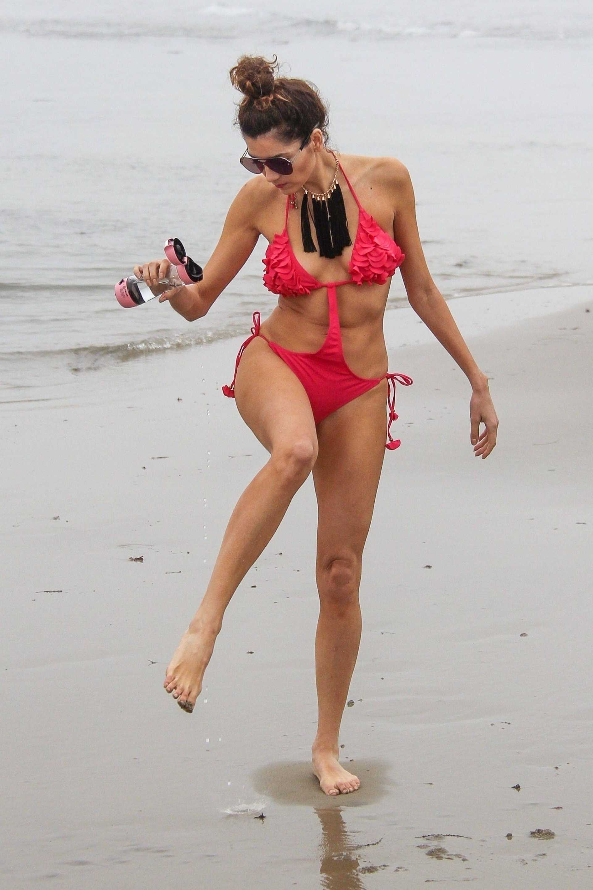 Blanca Blanco in Red Swimsuit on the Beach in Malibu