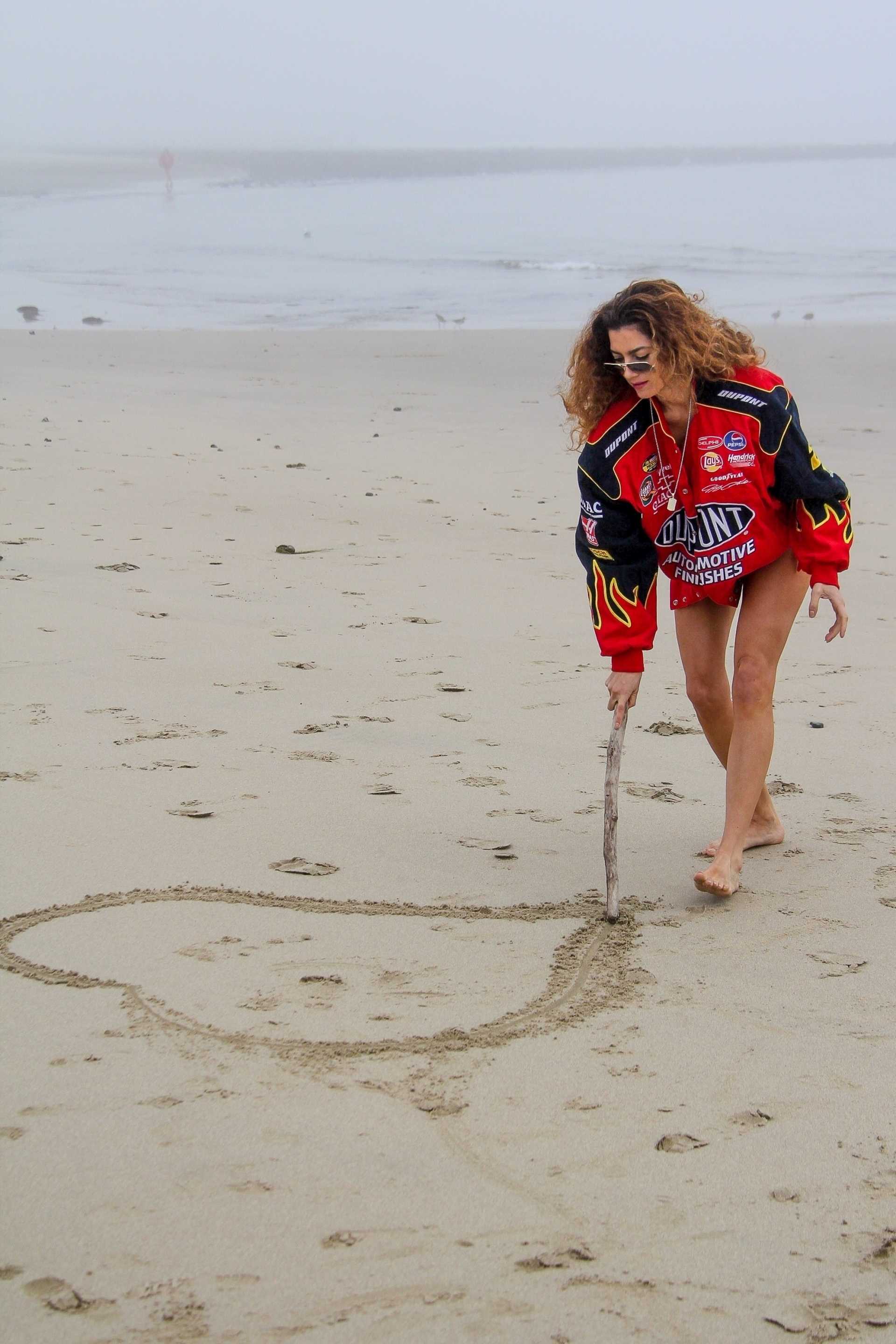 Blanca Blanco Photoshoot in a Red Racing Jacket on a Malibu Beach