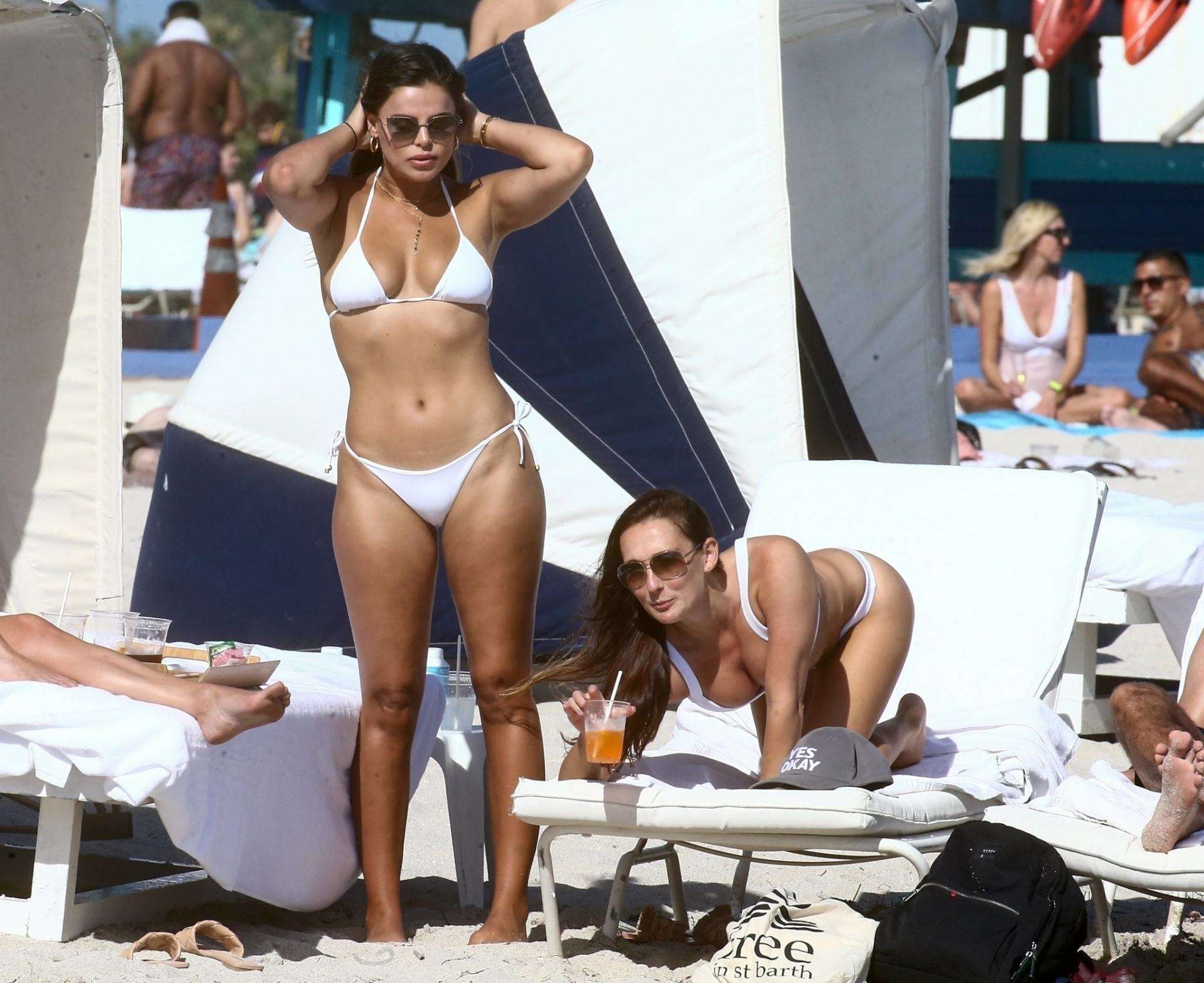 Brooks Nader Booty in a White Bikini at a Beach in Miami
