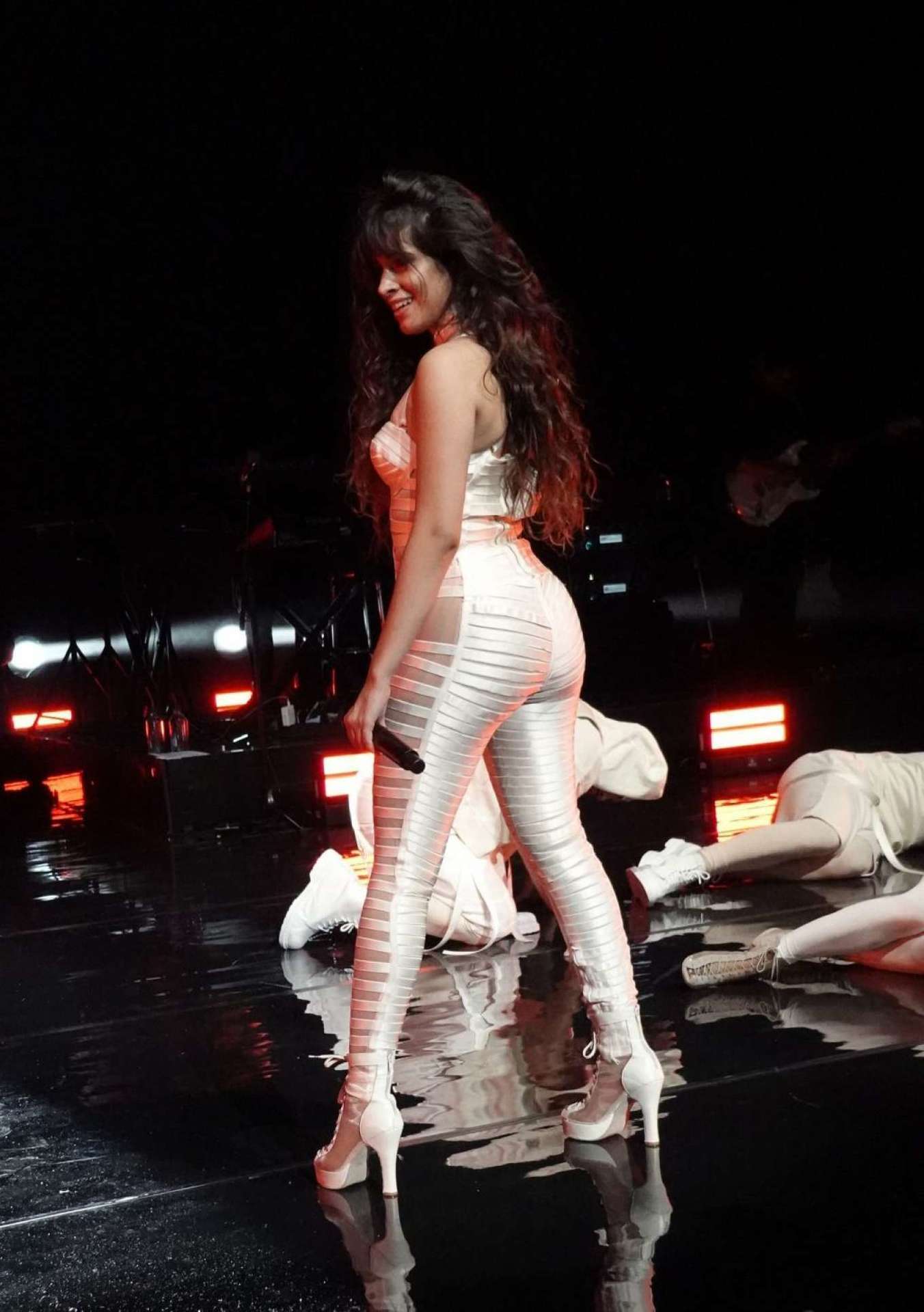 Attached to: Camila Cabello in White Cutout Catsuit, Performing for Verizon Up at The Fillmore Miami Beach