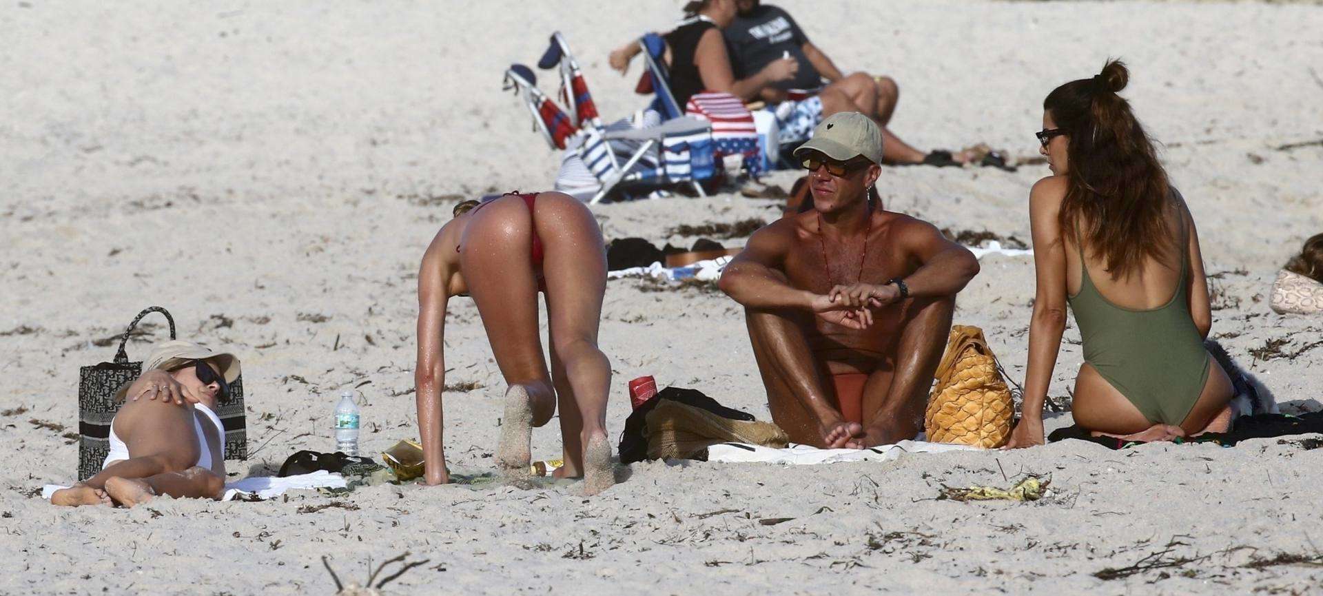 Candice Swanepoel Booty in Tiny Red Bikini at the Beach in Miami Beach