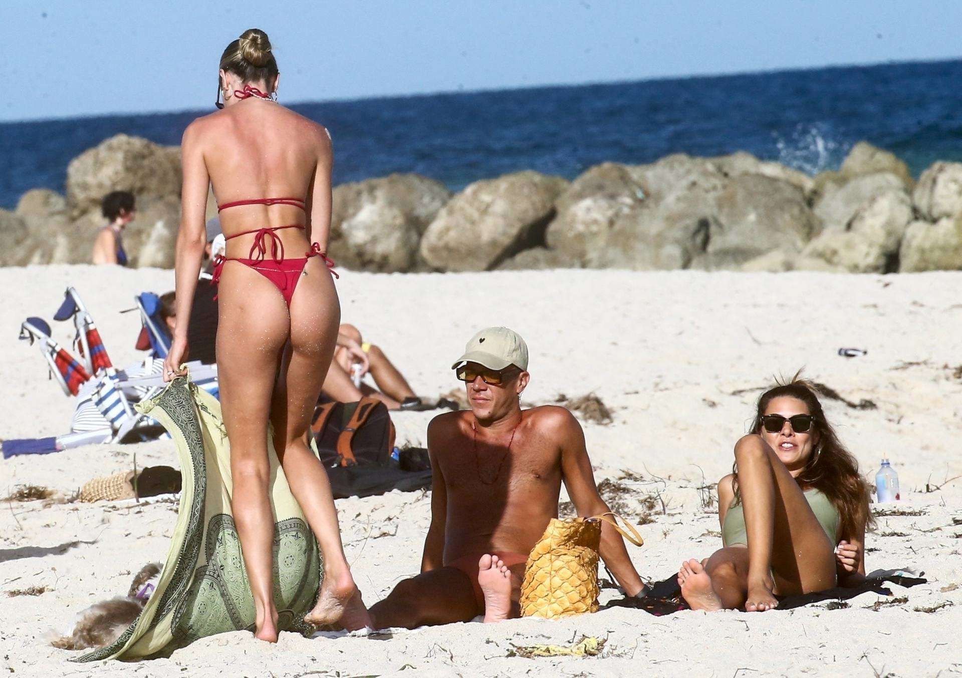 Candice Swanepoel Booty in Tiny Red Bikini at the Beach in Miami Beach