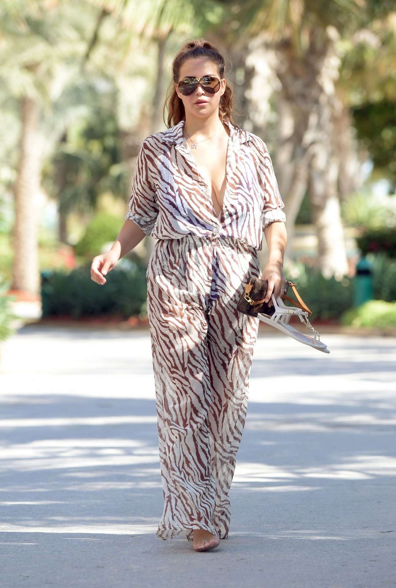 Attached to: Chloe Goodman in a Zebra Print Jumpsuit out on Holiday in Dubai