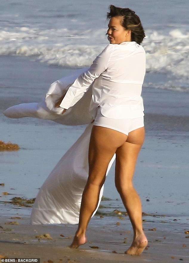 Attached to: Chrissy Teigen for a Photoshoot on the Beach in Malibu