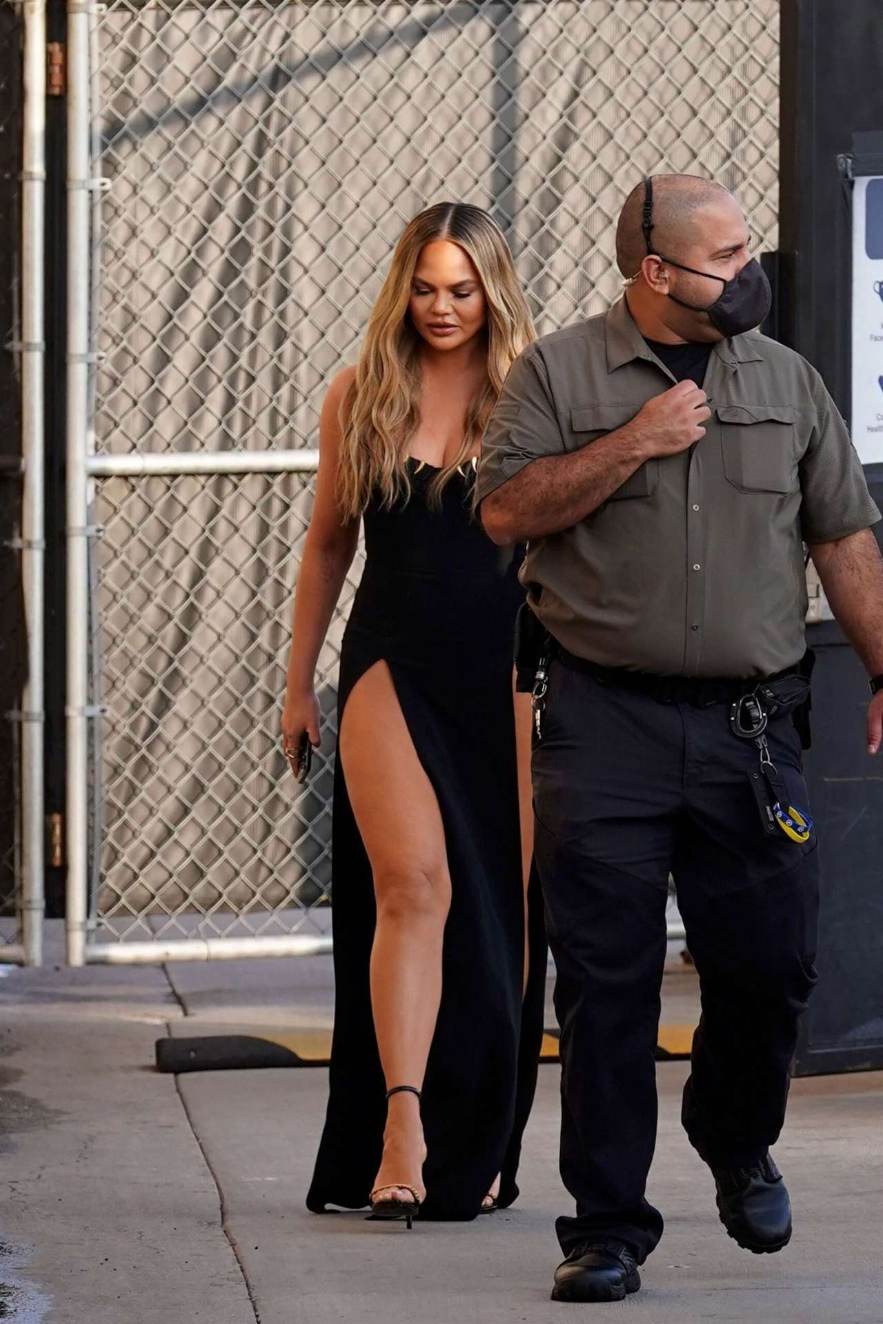 Chrissy Teigen Leggy in Black Dress at Jimmy Kimmel Live! in Hollywood