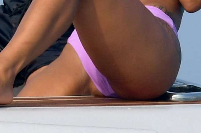 Christina Milian Booty and Pokies in Purple Bikini on a Yacht in France