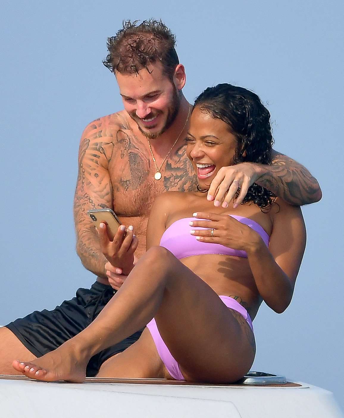 Attached to: Christina Milian Booty and Pokies in Purple Bikini on a Yacht in France