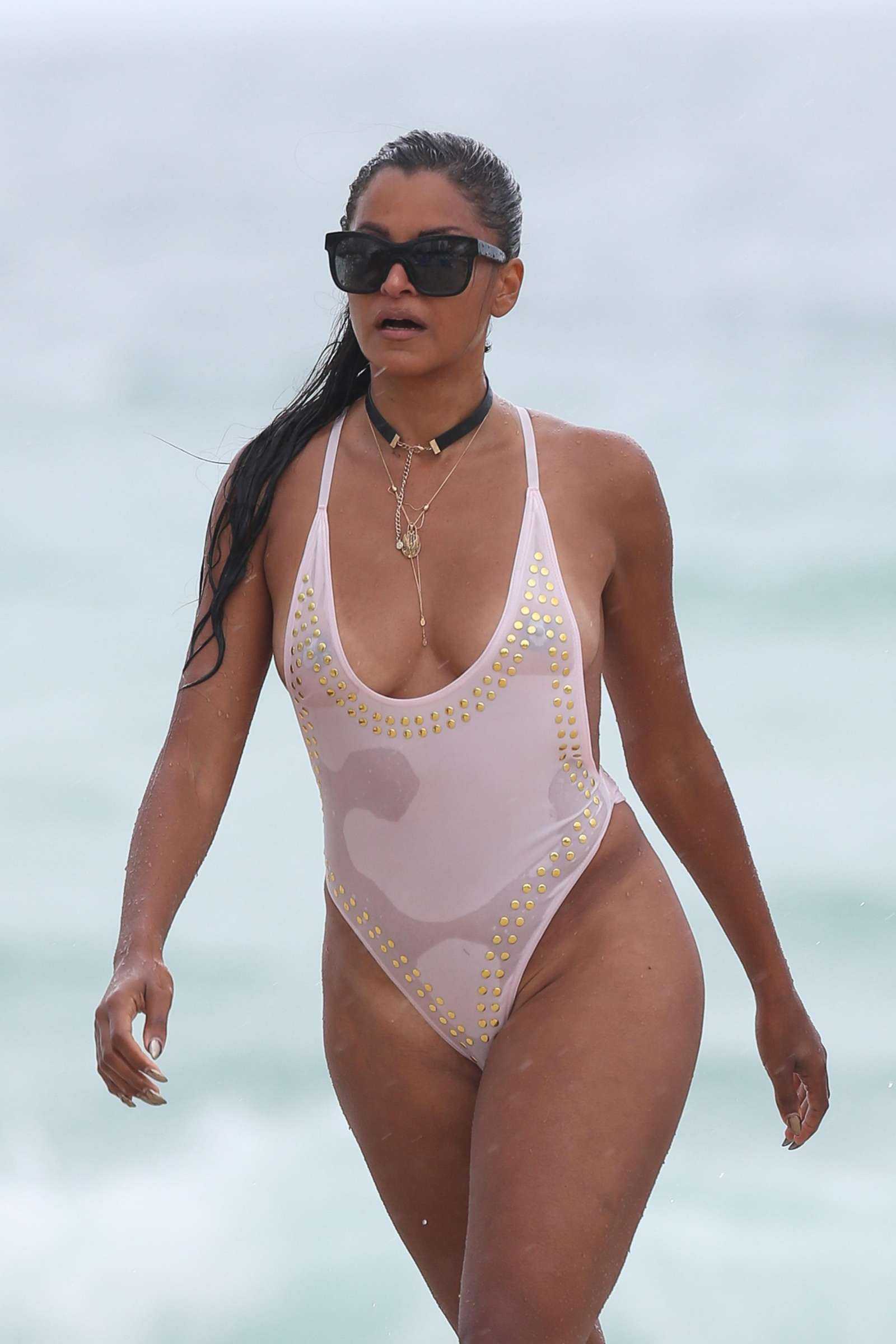 Claudia Jordan in Swimsuit on the Beach in Miami