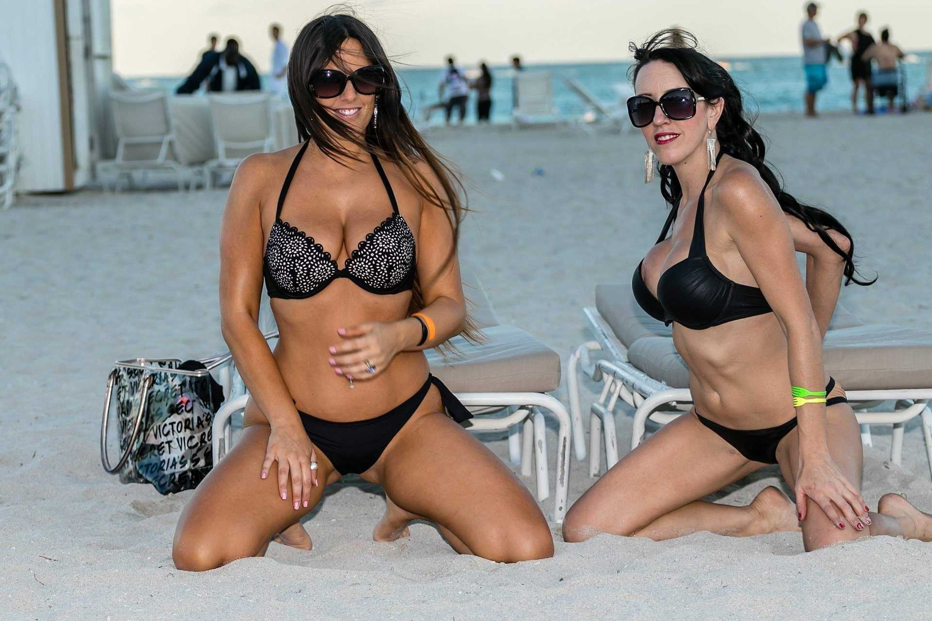 Claudia Romani and Bella Bond in Bikini on Miami Beach