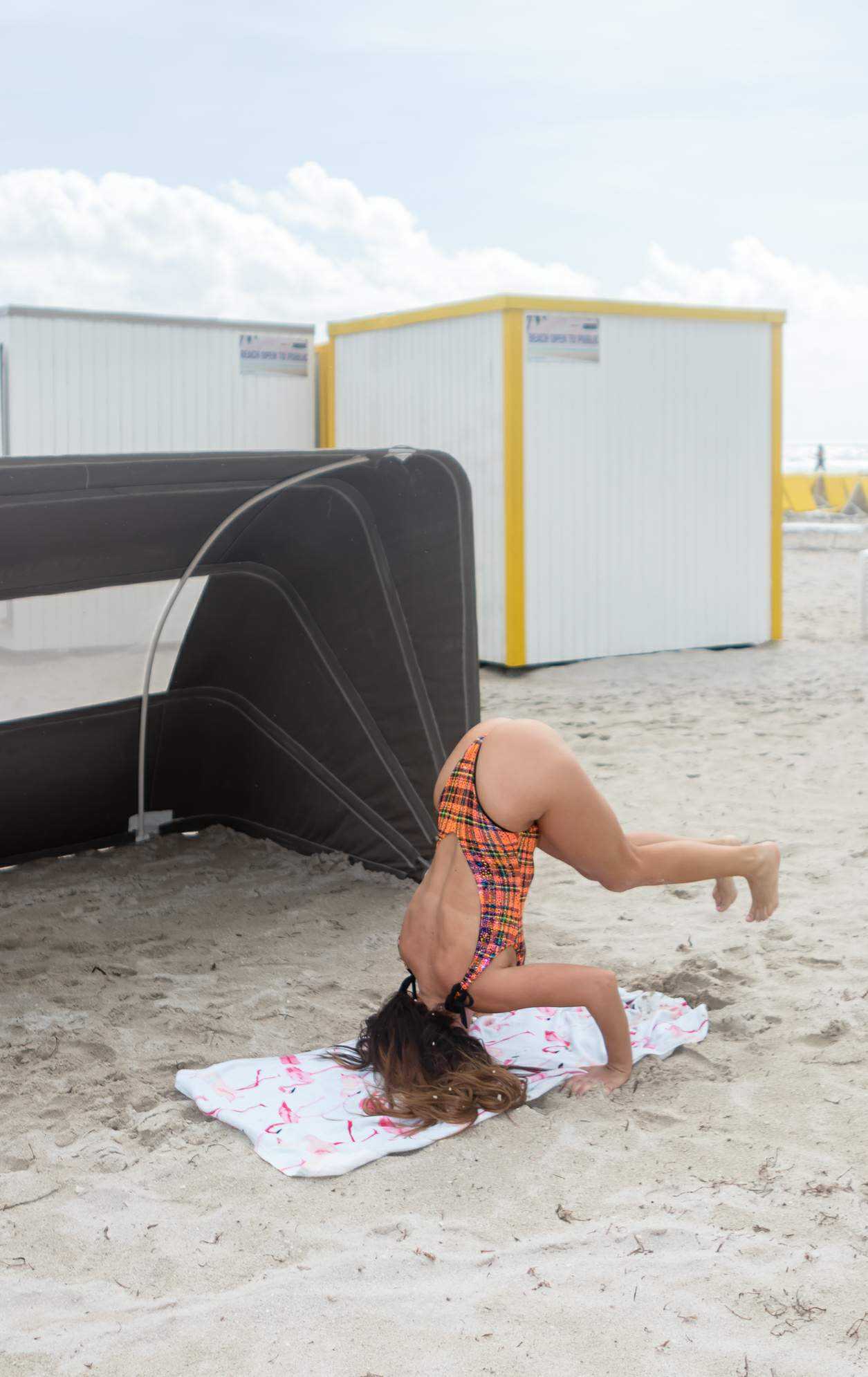Attached to: Claudia Romani in Bikini Practicing Yoga on South Beach