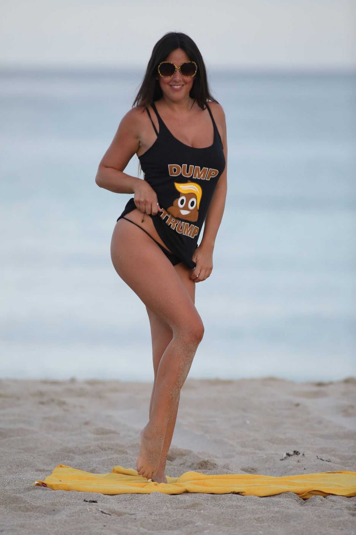 Claudia Romani in Black Bikini Bottom at Miami Beach